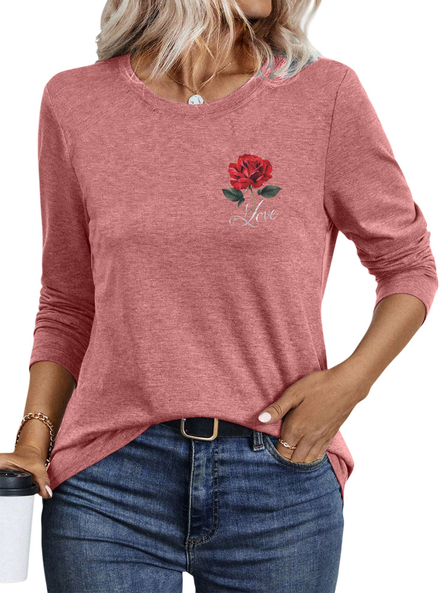 Dieses lässige, elegante Langarm-T-Shirt besticht durch eine verspielte, taillierte Silhouette und eine Vielzahl von Farben. Es verfügt über eine lustige,Rose aussagekräftige Grafik auf der Brust, eine entspannte Silhouette mit überschnittenen Schultern, lange Ärmel, einen Rundhalsausschnitt und ein farbenfrohes Design. Der personalisierte Grafikdruck macht dieses Langarm-T-Shirt stylisch und fesselnd.