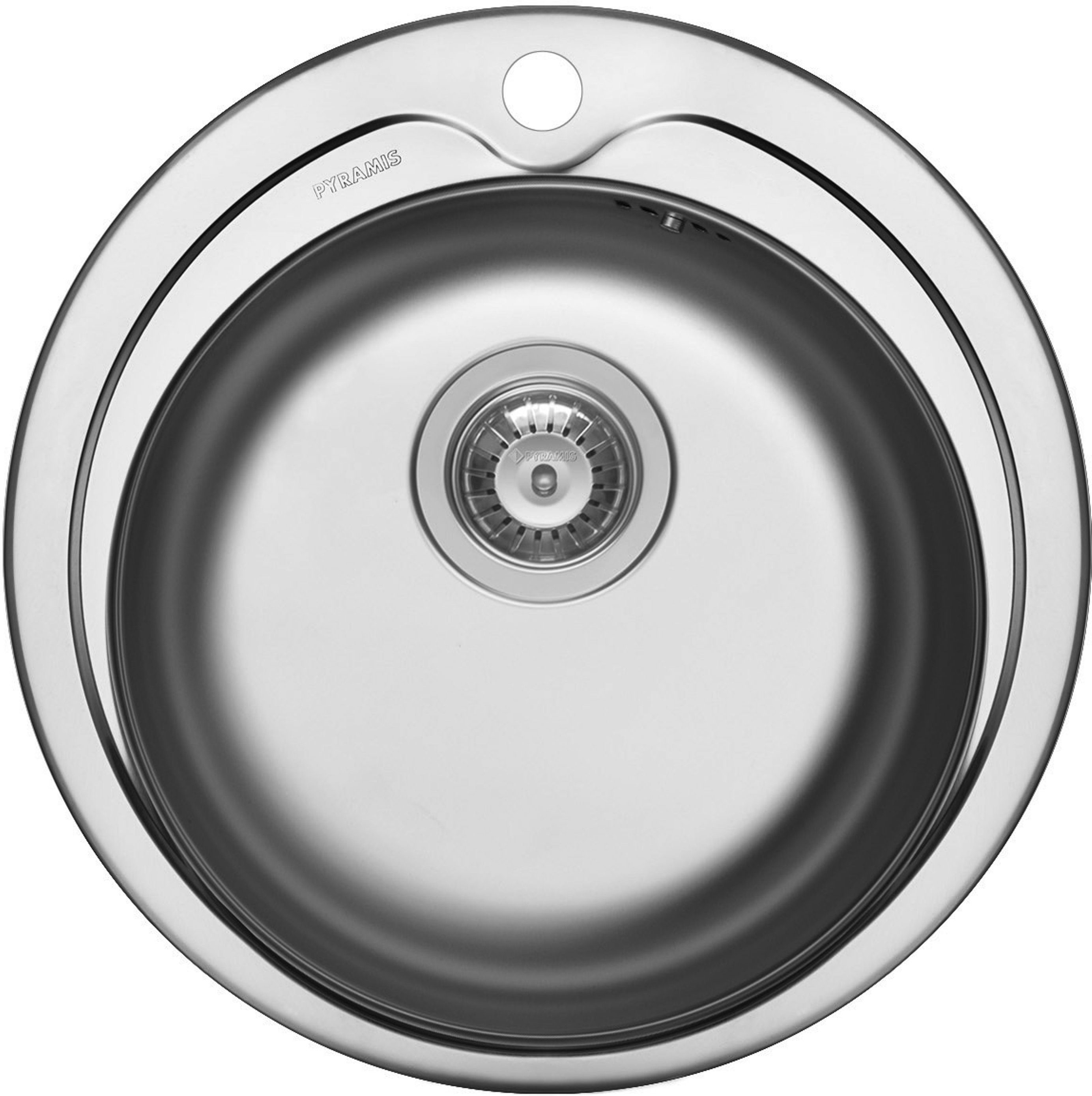 Eigenschaften | Edelstahl poliert Küchenspüle mit 1 rundem Becken Überlauf im Becken Rundspüle mit integrierter Armaturenbank |