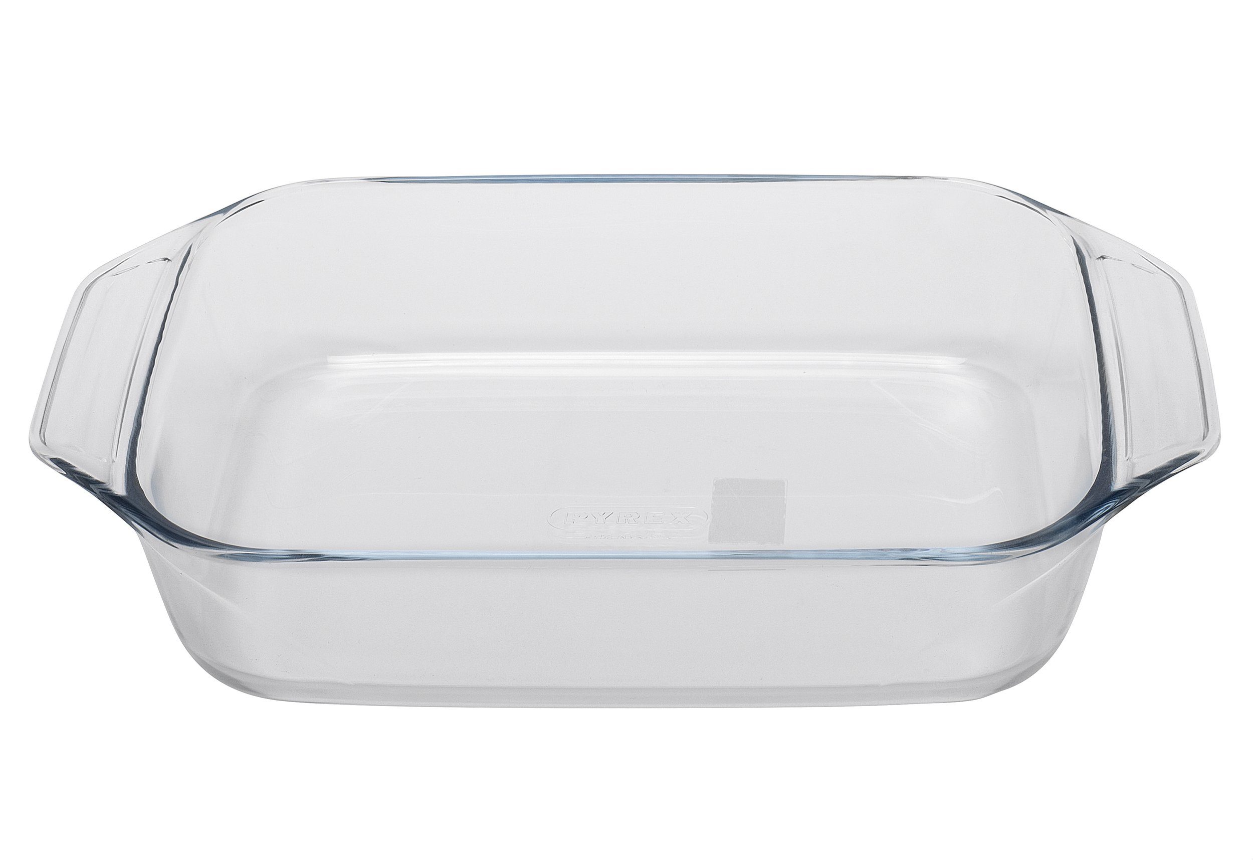 Farbe: transparent. Größe: ca. 35 x 23 x 6,5 cm. Spülmaschinenfester Bräter mit hoher Temperaturbeständigkeit von -40 bis 300 Grad Celsius und rutschsicheren Griffen. Kratzfest und ohne Deckel.