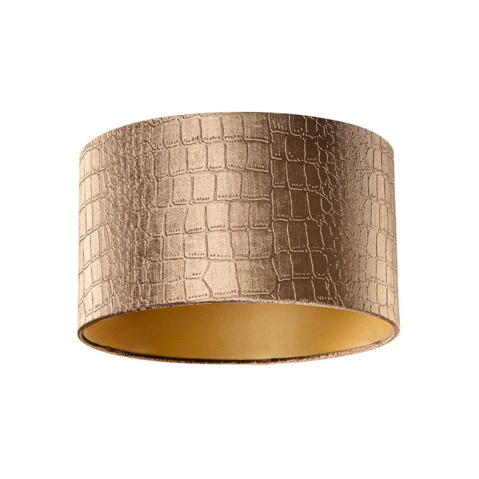 Verleihen Sie Ihrer Einrichtung einen Hauch von Extravaganz mit diesem stilvollen Samtlampenschirm im Krokodil-Design und einer edlen goldenen Innenseite. Der wunderschöne Krokodil-Druck in warmem Bronze verleiht dem Schirm einen einzigartigen, luxuriösen Look, der perfekt zu modernen oder klassischen Einrichtungen passt. Dank der goldenen Innenseite strahlt die Lampe ein warmes, stimmungsvolles Licht aus, das sofort eine gemütliche Atmosphäre schafft. Mit einem Durchmesser von 35 cm und einer Höhe von 20 cm ist dieser Schirm ideal für Tischleuchten und Pendelleuchten geeignet. Entscheiden Sie sich für Eleganz mit einem exotischen Touch und machen Sie Ihre Beleuchtung zu einem echten Hingucker!