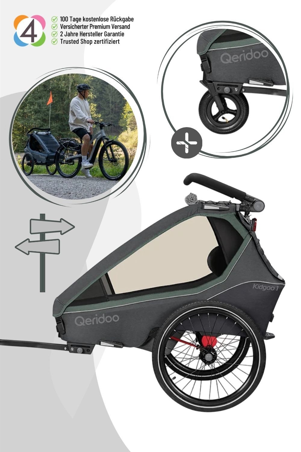 Entdeckt die Freiheit des Radfahrens mit Eurem kleinen Schatz! Der Qeridoo Kidgoo ist der ideale Fahrradanhänger für ein Kind ab etwa 6 Monaten, der nicht nur Sicherheit und Komfort, sondern auch jede Menge Spaß und Abenteuer verspricht. Egal, ob Ihr eine entspannte Radtour durch den Park oder eine aufregende Erkundungstour in der Natur plant, mit dem Kidgoo seid Ihr bestens ausgestattet.