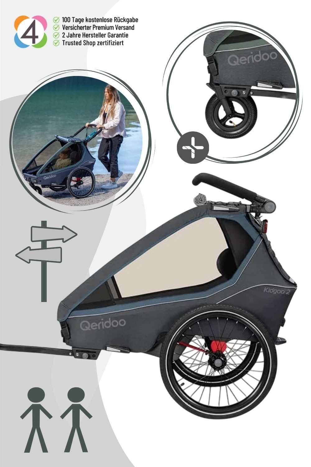 Entdeckt die Freiheit des Radfahrens mit Euren kleinen Schätzen! Der Qeridoo Kidgoo ist der ideale Fahrradanhänger für zwei Kinder ab etwa 6 Monaten, der nicht nur Sicherheit und Komfort, sondern auch jede Menge Spaß und Abenteuer verspricht. Egal, ob Ihr eine entspannte Radtour durch den Park oder eine aufregende Erkundungstour in der Natur plant, mit dem Kidgoo seid Ihr bestens ausgestattet.
