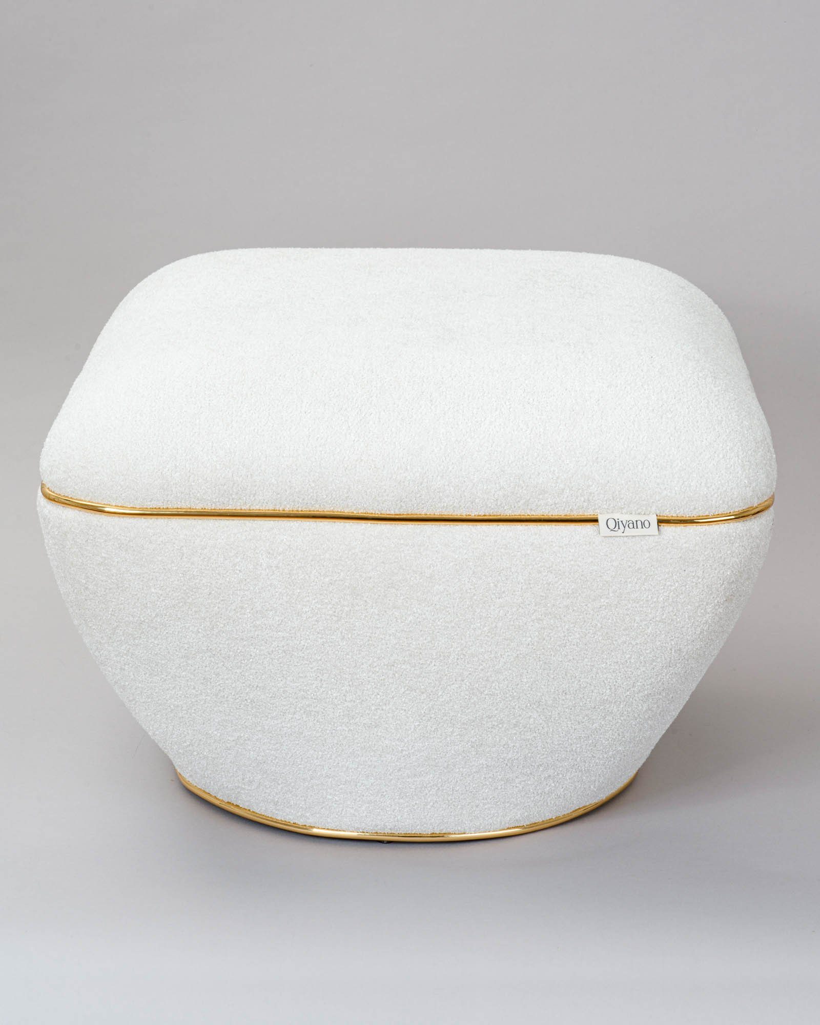 Dieser hochmoderne und minimalistisch gehaltene Pouf aus der Kollektion Jala ist ein absolutes Must-have für jedes stylisches Zuhause. Der Pouf ist für Innenräume geeignet und kann an jedem Ort Ihres Zuhauses seinen Platz finden, sei es im Wohnbereich, Schlafbereich oder Büro. Den kleinen, aber feinen Sitzhocker, der bis zu 160 kg hält, gibt es in vielen verschiedenen Farben und Obermaterialien. Somit ist für jeden Geschmack und jede Inneneinrichtung Ihres Reiches etwas dabei. Verfügbar sind die Farben Beige, Taupe, Schwarz, Anthrazit und Weiß. Außerdem gibt es in den verschiedenen Farbrichtungen vereinzelt die Ausführungen mit Samt-Stoff, Teddy-Stoff und einem Stoff mit gröberer Struktur. Sie können also selbst entscheiden, ob Sie ihr Zuhause mit einem weicheren Pouf mit Samt- oder Teddy-Stoff oder einem härteren, robusteren Stoff mit dem Stoff mit gröberer Struktur optisch aufwerten möchten. Все Obermaterialien bieten jedoch ein angenehmes Sitzgefühl und sind hochwertig verarbeitet. Die simpel gehaltene Oberfläche und die goldene oder silberne Umrandung der Sitzfläche bieten einen glamourösen Touch für Ihr Zuhause. Die Form mit abgerundeten Ecken hebt sich ab von anderen Poufs. Er harmoniert mit jeder Umgebung, in der er eingesetzt wird und lädt zum gemütlichen Verweilen ein. Der Pouf ist ca. 43 cm hoch und wiegt nur 9,1 kg. Daher kann der Pouf, wenn Sie Gäste erwarten oder den Look Ihrer Wohnung verändern möchten, beliebig verstellt werden. Er ist somit perfekt für den Alltag geeignet und darf in keinem Zuhause fehlen.