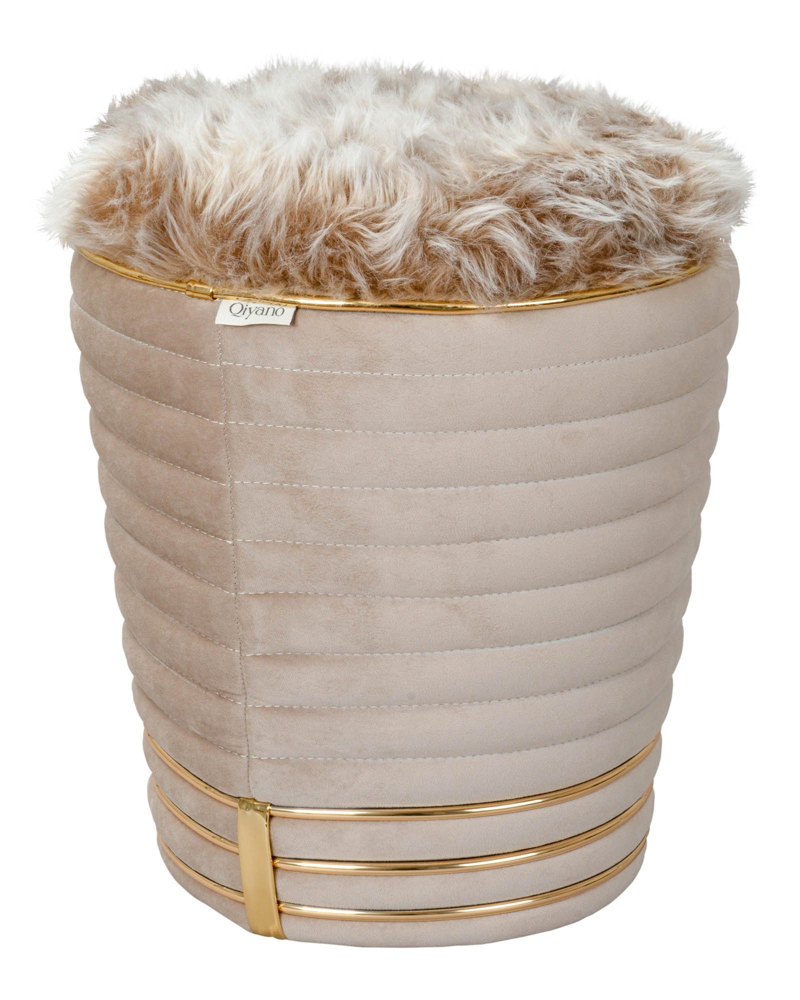 Dieser stylische Pouf aus der Kollektion Ainoa wertet Ihr Zuhause stylisch optisch auf. Der Pouf ist für Innenräume geeignet und kann überall seinen Platz finden, sei es im Wohnbereich, Schlafbereich oder Büro. Der kleine Sitzhocker, der bis zu 160 kg hält, ist in vielen modernen Farben und diversen Oberflächenmaterialien erhältlich. Verfügbar sind die Farben Beige, Taupe, Schwarz, Anthrazit und Weiß. Es ist also für jeden Geschmack und jede Inneneinrichtung eine komplementierende Farbe dabei. Außerdem gibt es in den verschiedenen Farbrichtungen vereinzelt die Ausführungen mit Samt-Stoff, Teddy-Stoff und einem Stoff mit gröberer Struktur. Sie können also selbst entscheiden, ob Sie ihr Zuhause mit einem weicheren Pouf mit Samt- oder Teddy-Stoff oder einem härteren, robusteren Stoff mit dem Stoff mit gröberer Struktur optisch aufwerten möchten. Все Obermaterialien bieten jedoch ein angenehmes Sitzgefühl und sind hochwertig verarbeitet. Die Poufs aus der Kollektion Ainoa sind ein Must-have für jeden, der einen schicken Hingucker und gleichzeitig eine geschickte Sitzmöglichkeit für sein Zuhause sucht. Steppnähte und mehrere Ringe mit jeweils goldener oder silberner Farbe verleihen einen glamourösen Look. Besonders schön ist die flauschige, sehr gemütliche Sitzfläche, die zum Verweilen einlädt. Der Pouf ist einzigartig und je nach Farbgebung harmoniert der Pouf mit sanften Tönen. Der Pouf ist ca. 50 cm hoch und wiegt nur ca. 5,1 kg. Die Poufs können daher nach Bedarf beliebig einfach verstellt werden und passen perfekt in jeden Bereich Ihres Wohnraums.