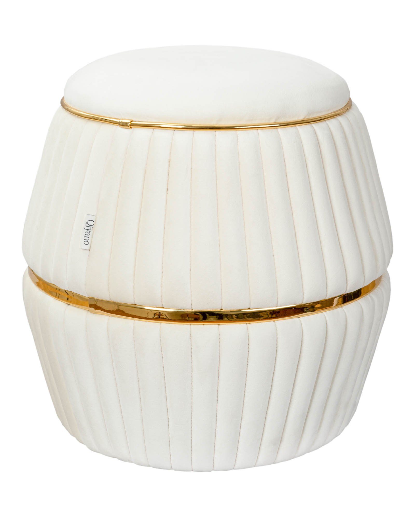 Dieser stylische Pouf aus der Kollektion Ella ist ein Must-have für jedes Zuhause. Der Pouf ist für Innenräume geeignet und kann überall seinen Platz finden, sei es im Wohnbereich, Schlafbereich oder Büro. Der kleine Sitzhocker, der bis zu 160 kg hält, ist in vielen schicken Farben und Oberflächenmaterialien erhältlich. Verfügbar sind die Farben Grün, Beige, Taupe, Schwarz, Anthrazit und Weiß. Es ist also für jeden Geschmack und jede Inneneinrichtung eine komplementierende Farbe dabei. Außerdem gibt es in den verschiedenen Farbrichtungen vereinzelt die Ausführungen mit Samt-Stoff, Teddy-Stoff und einem Stoff mit gröberer Struktur. Sie können also selbst entscheiden, ob Sie ihr Zuhause mit einem weicheren Pouf mit Samt- oder Teddy-Stoff oder einem härteren, robusteren Stoff mit dem Stoff mit gröberer Struktur optisch aufwerten möchten. Все Obermaterialien bieten jedoch ein angenehmes Sitzgefühl und sind hochwertig verarbeitet. Steppnähte und ein Ring mit jeweils goldener oder silberner Farbe machen den Pouf zum Hingucker und verleihen einen glamourösen Look. Der Pouf ist einzigartig und je nach Farbgebung harmoniert der Pouf mit sanften Tönen oder stellt einen großartigen Farbtupfer in Ihrem Zuhause dar. Der Pouf ist ca. 53 cm hoch und wiegt nur ca. 10,25 kg. Die Poufs können daher nach Bedarf beliebig einfach verstellt werden und passen perfekt in jeden Bereich Ihres Wohnraums.