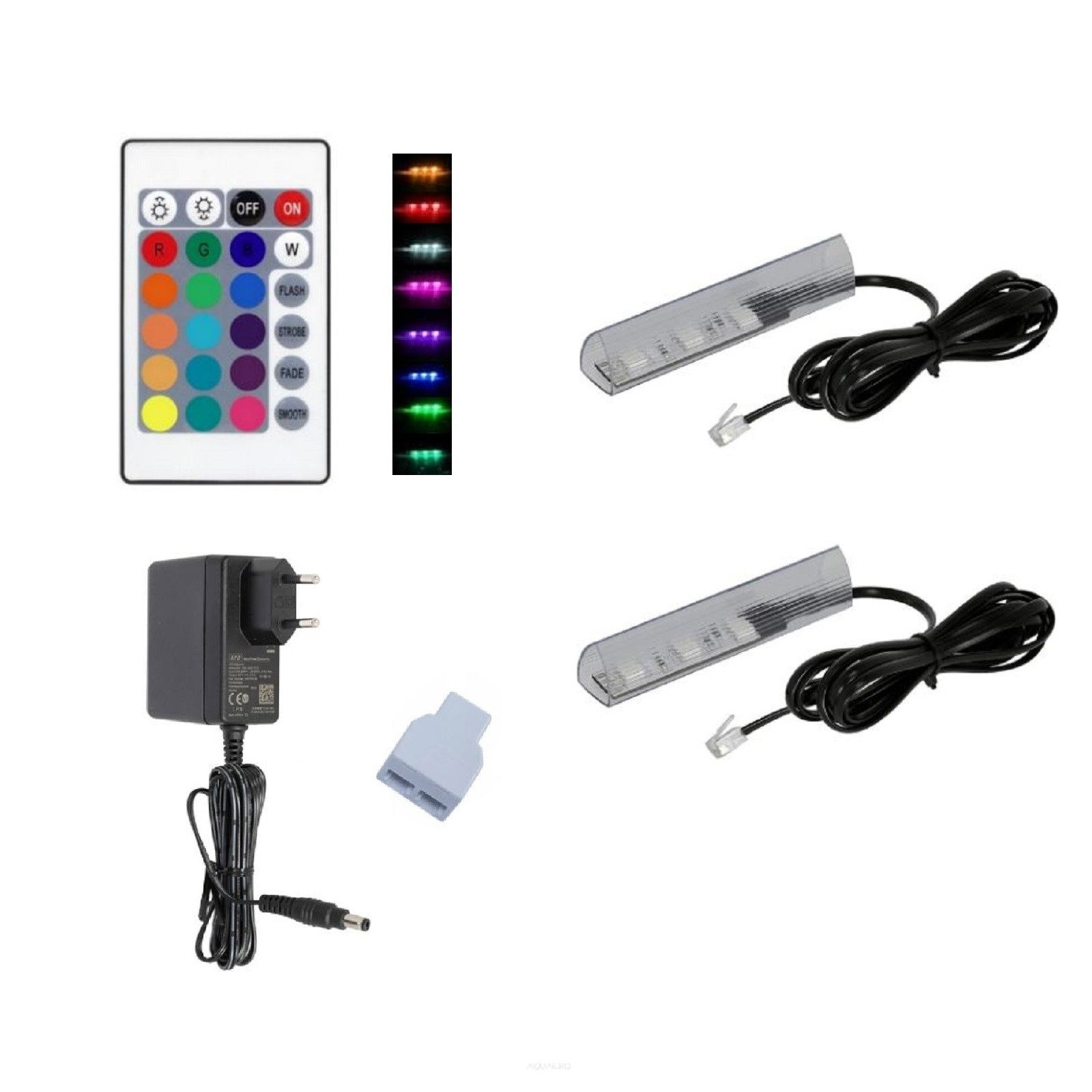 Lieferumfang | Beleuchtungsclips, Fernbedienung, Stecker |