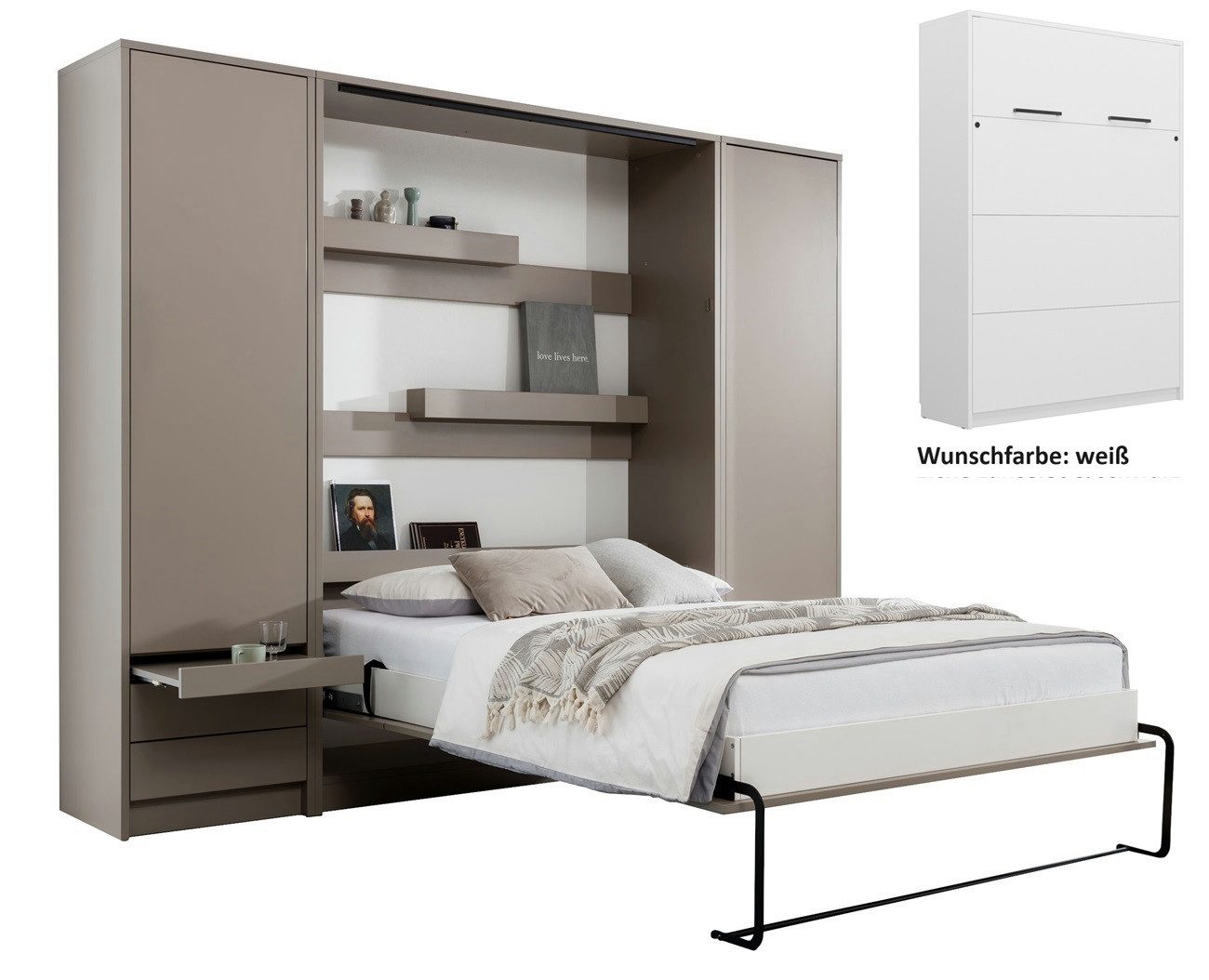 Warnhinweise | - alle Schrankbetten müssen an einer festen Wand sicher befestigt werden - es wird empfohlen die Montage durch Fachkräfte durchzuführen - eine unsachgemäße Montage kann nicht nur eine Beschädigung des Schrankbettes verursachen, sondern auch zu Verletzungen oder im schlimmsten Fall sogar zum Tod führen. - Stellen Sie sicher, dass Kinder und Haustiere bei der Montage der Möbel ferngehalten werden |