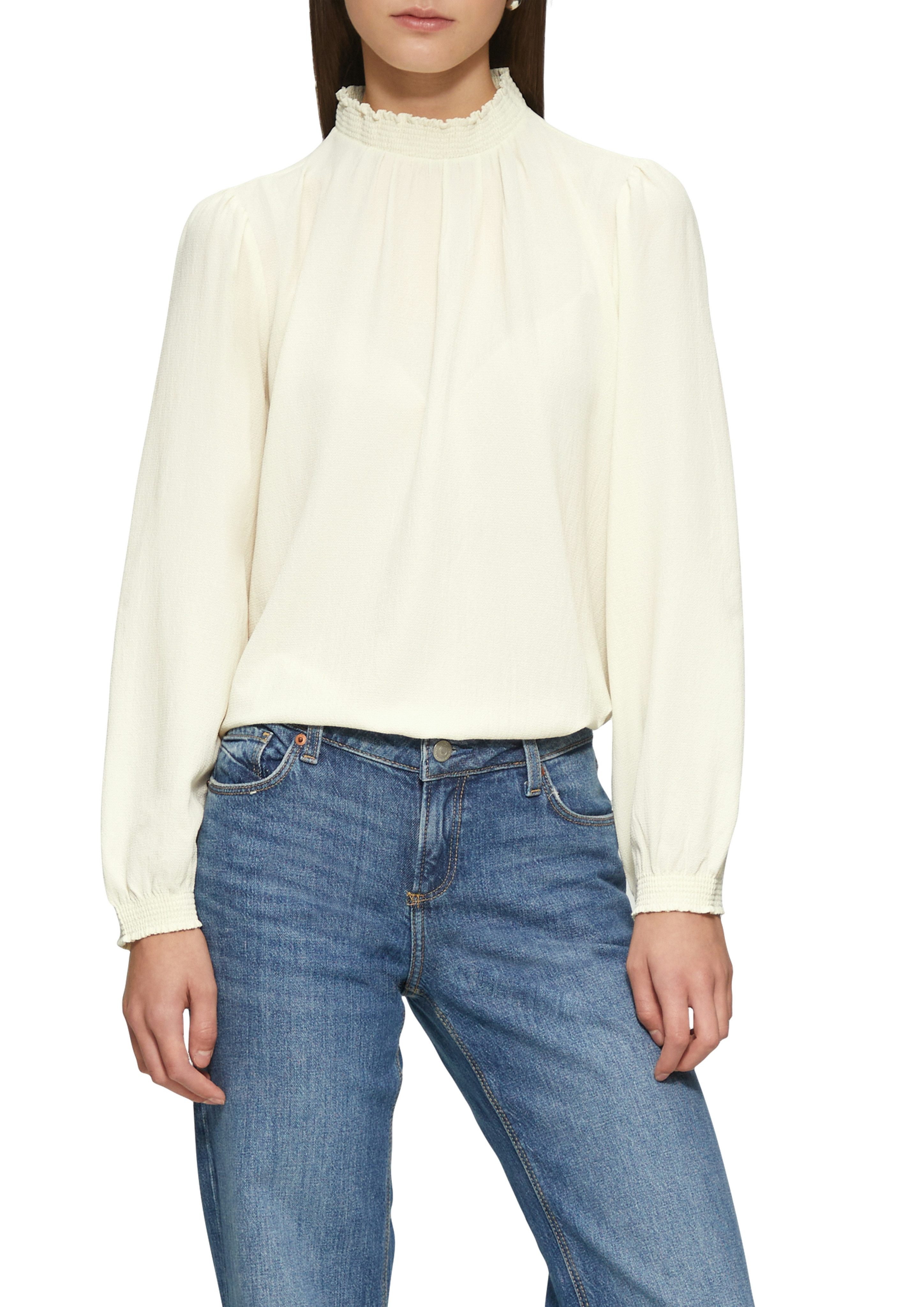 Die Langarmbluse von QS ist sowohl bei schicken Anlässen als auch im Büro eine gute Option. Der Stehkragen steht, wie der Name bereits verrät, gerade nach oben ohne umgeschlagen zu werden. Dadurch eignet er sich vor allem für schicke und toughe Outfits. Die langen Ärmel enden in einem elastischen Bund. Diese Bluse ist taillenbedeckend sowie basic geschnitten, sodass dein Oberkörper dezent in Szene gesetzt wird.