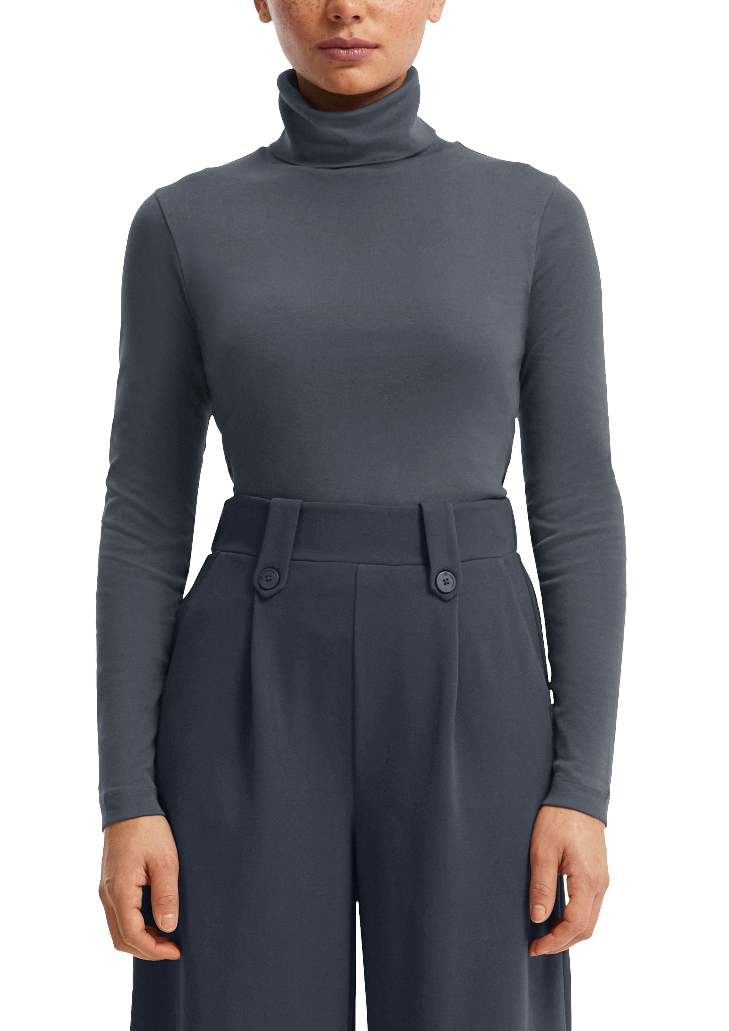 Das Rollkragenshirt von QS bildet die Grundlage für jedes stilsichere Outfit. Der Rollkragen sieht schick aus und ist angenehm wärmend, wenn es draußen kalt wird. Dieses Shirt ist taillenbedeckend sowie schmal geschnitten, sodass es deine Silhouette betont.