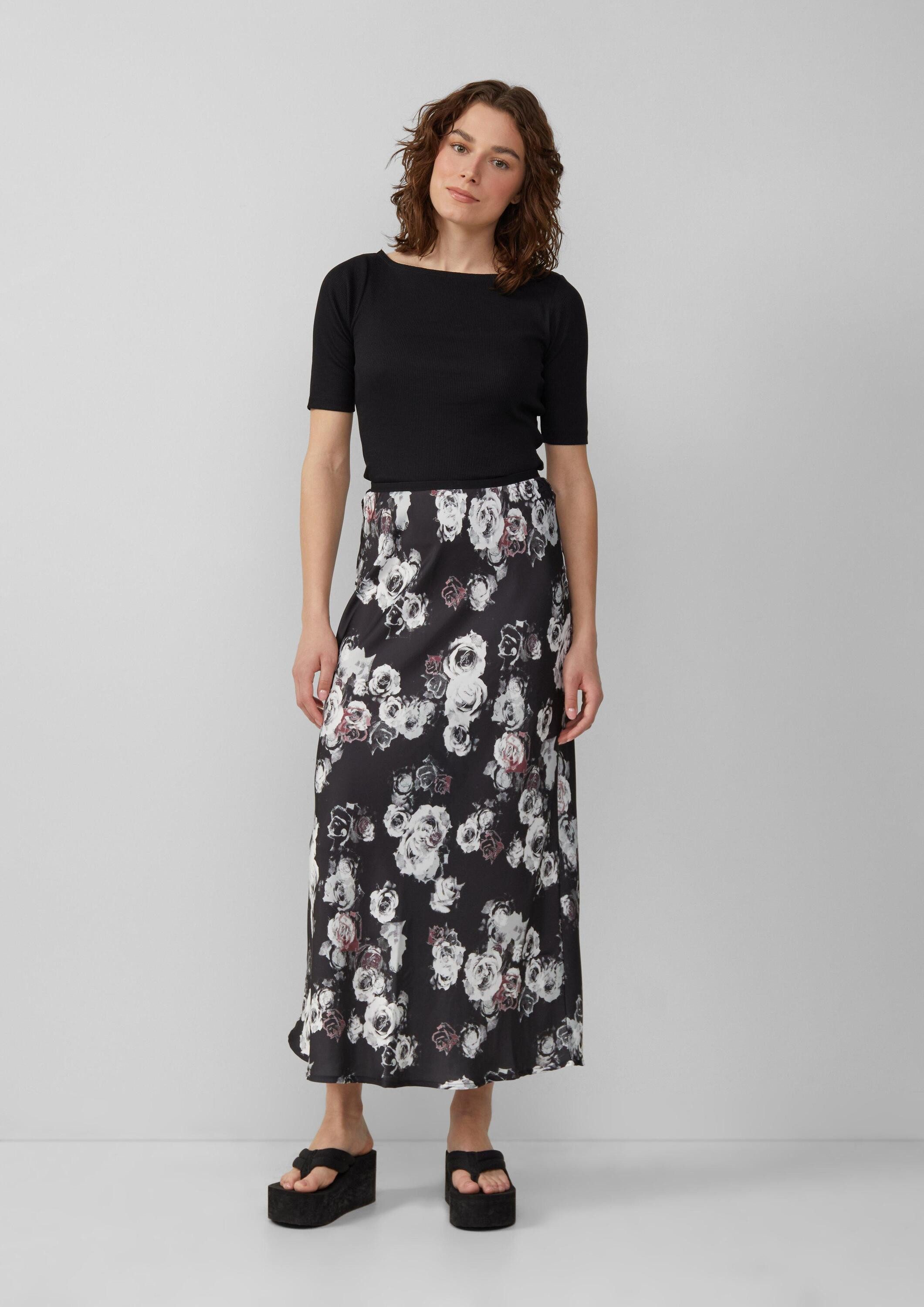 Schnittform Длина | Rock mit All-over-Print in Satinoptik |
