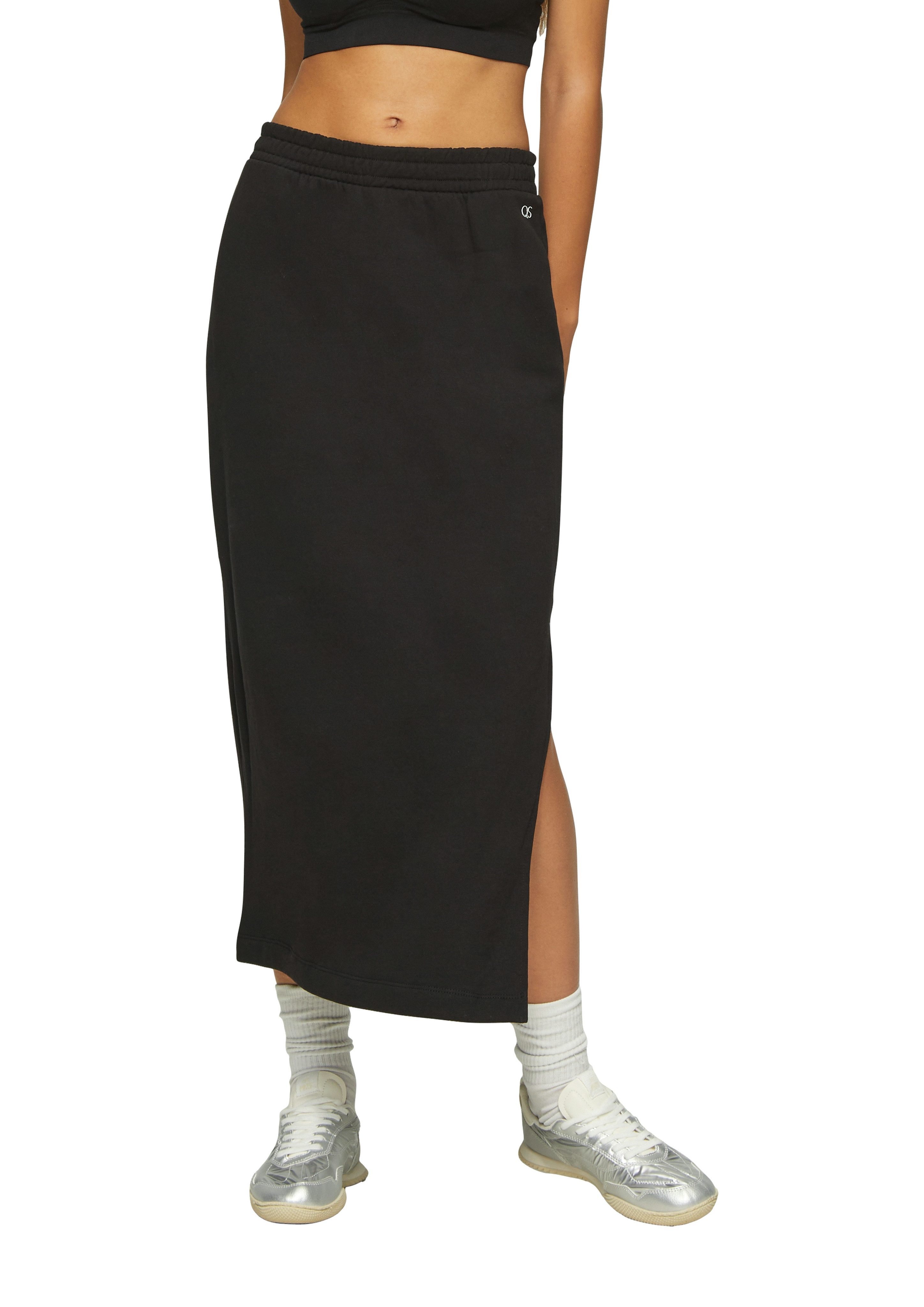 Mit dem langen Sweatrock von QS bist du leger unterwegs. Die hohe Leibhöhe betont deine Taille und wirkt sehr weiblich.