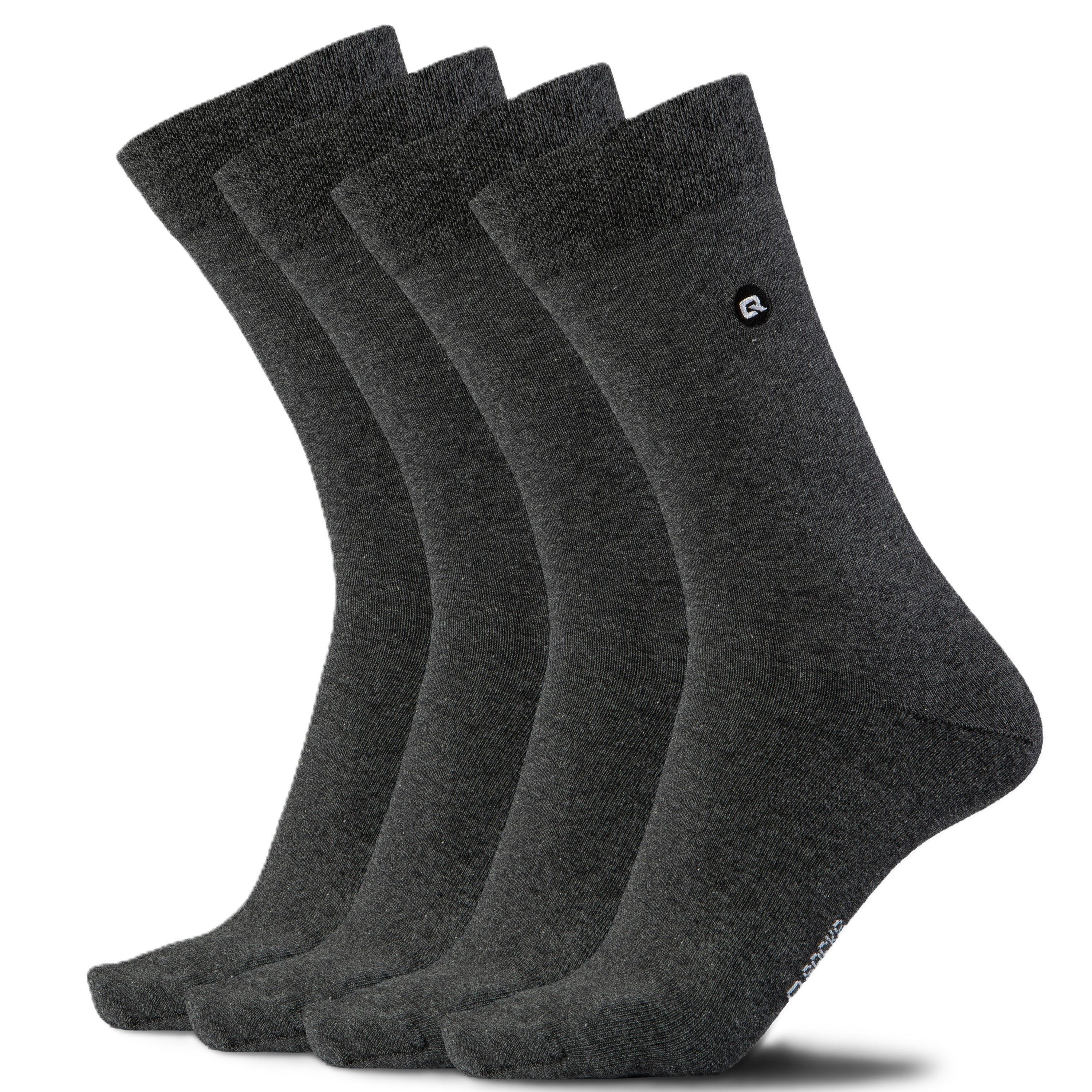 Entdecken Sie unsere Businesssocken 4 Paar für Herren aus Bio-Baumwolle mit druckfreie Naht im praktischen 4er-Pack, entwickelt für Männer, die im Alltag wie im Berufsleben Wert auf höchsten Tragekomfort und ein gepflegtes Erscheinungsbild legen. Die Socken bestehen aus einer hochwertigen Materialmischung mit 78 % gekämmter Bio-Baumwolle, die besonders weich, hautfreundlich und atmungsaktiv ist. Die gekämmte Baumwolle sorgt für eine glatte, fusselfreie Oberfläche und ein angenehm natürliches Tragegefühl, ideal auch für empfindliche Haut. Ein besonderes Highlight ist die nahtlose Spitze, die Druckstellen an den Zehen vermeidet und auch bei langen Tagen in Business-Schuhen ein durchgehend angenehmes Trageerlebnis bietet. Der elastische Abschlussrand ohne Gummidruck verhindert unangenehmes Einschneiden oder Verrutschen, perfekt für ganztägigen Komfort im Büro oder unterwegs. Dank des durchdachten Materialmix mit Polyamid und Elasthan passen sich die Socken optimal an den Fuß an und bleiben dauerhaft formstabil, auch nach häufigem Waschen. Ihr schlichtes, elegantes Design macht sie vielseitig kombinierbar: ob zum Anzug, zur Stoffhose oder im gepflegten Freizeitlook. Geliefert wird der 4er-Pack in einer edlen Geschenkbox, die sich auch ideal als stilvolles Präsent eignet, für Geburtstage, Weihnachten oder als hochwertiges Mitbringsel für Geschäftspartner und Freunde. Fazit: Diese Herrensocken vereinen weiche gekämmte Baumwolle, nahtlose Verarbeitung und druckfreien Halt mit stilvoller Optik, die perfekte Wahl für Männer, die Komfort, Qualität und Eleganz gleichermaßen schätzen.