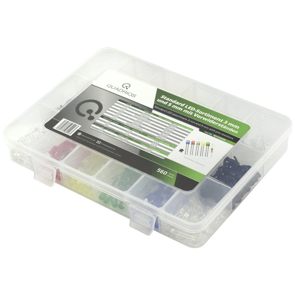 Dieses Experimentier- und Praktiker-Меню mit superhellen Standard-LEDs mit 3 mm und 5mm Durchmesser sowie diversen Vorwiderständen eignet sich optimal für den Sofortstart bei Experimenten mit Halbleiterlicht. Durch Widerstands-Kombinationen von Parallel- bzw. Reihenschaltung oder Variieren der Versorgungsspannung lassen sich verschiedene Betriebsströme (Helligkeiten) realisieren. Eine Kurzbeschreibung der enthaltenen Komponenten ist übersichtlich auf der Innenseite des Deckels abgedruckt. Das Datenblatt enthält nützliche Informationen zum Меню - aber auch wichtige technische Details zu den enthaltenen Komponenten. Nur so kann sichergestellt werden, dass die LEDs in deren bestimmten Parametern betrieben werden können, weil die Bauelemente eindeutig spezifiziert sind.