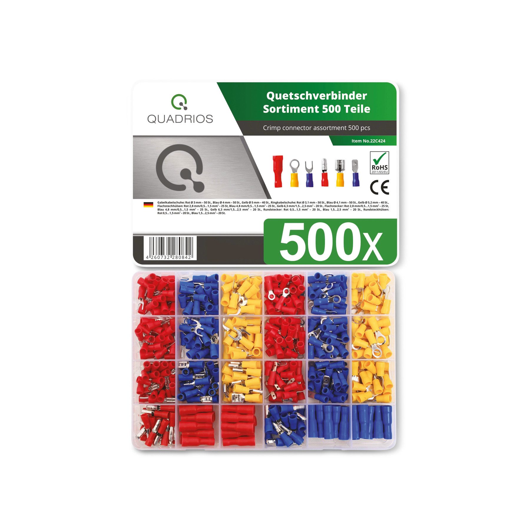 Quadrios-Crimpverbinder garantieren in Verbindung mit den passenden Crimpwerkzeugen optimale Ergebnisse. Diese Produktserie umfasst die in der Praxis am häufigsten verwendeten Teile. Das Меню ist besonders geeignet für Bastler, Handwerker, Außendienst, Servicewerkstätten, Elektroniker und Laborbedarf.