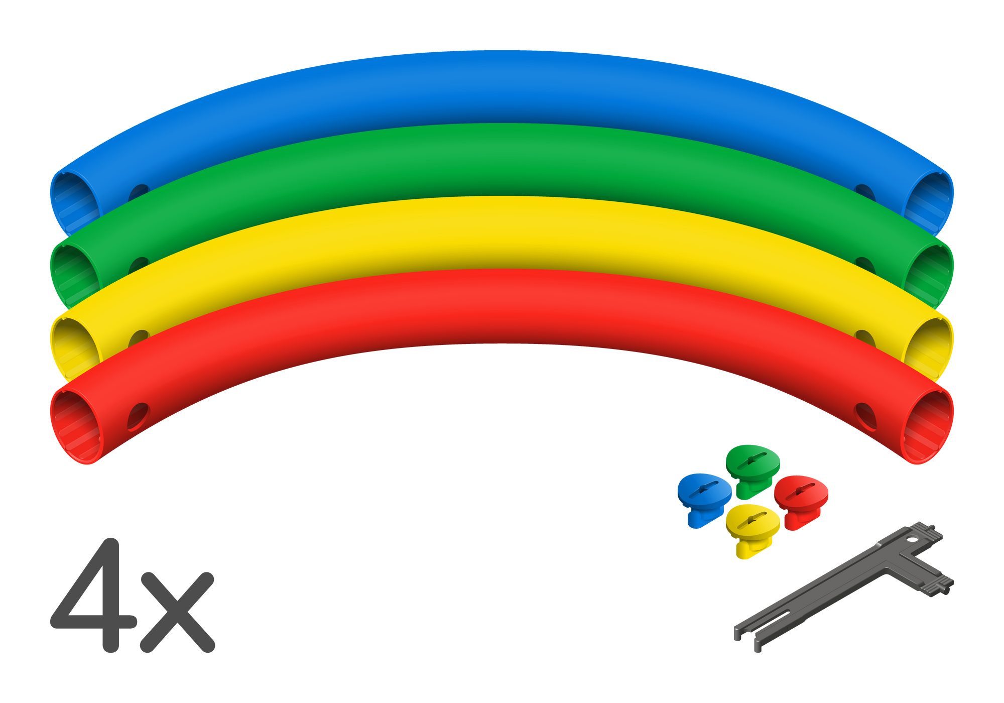 Das Bogenrohrset beinhaltet 4 Bogenrohre sowie die für die Montage benötigten 8 Rohrschrauben und einen Schlüssel.