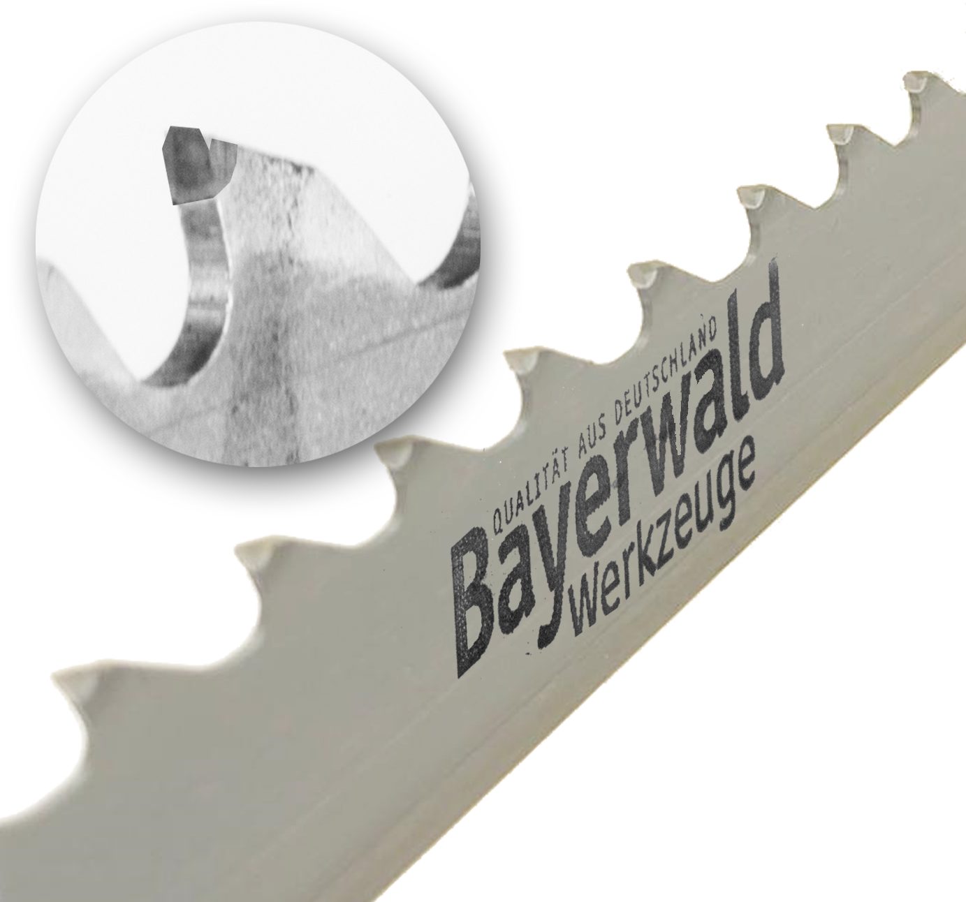 " Spezielle Zahnform mit innovativer Zahngeometrie für stark abrasiven Werkstoffen (z.B. Dämmplatten oder Poroton,Lochziegel). Speziell gefertigt für Mauersteinbandsägen Sägeband für Poroton / Lochziegel Hartmetall bestücktes Universal Sägeband, für alle gängigen Bau- und Isolierstoffe wie z:B. Poroton, Leichtbeton, Lochziegel, Dämmplatten usw. - speziell für den Einsatz im Baugewerbe mit Maschinen wie der Zagro UVB 400 oder Lissmac MBS 502.und vielen anderen. Dieses Sägeband hat eine sehr lange Standzeit. Durch die neue , besondere Zahnform ist ein wesentlich schnelleres Sägen möglich. Das Bayerwald HM PR plus Bandsägeblatt ,und hierbei stehr PR für Premium, hat gegenüber herkömmlichen Sägebändern eine wesentlich höhere Effizienz. Es sägt schneller und hält länger, da Rüstzeiten eingespart werden. Bandsägeblätter mit spitz geschliffenen Zahnspitzen sind dagegen eher Allrounder und bieten normale Schnittqualität bei durchschnittlichem Verschleiß. Es kommt zu stärkerer Erhitzung, da der Bandkörper am Material schleift. Qualitätsbedenken? Es handelt sich hier nicht um ein importiertes, minderwertiges Sägeband sondern um absolute Profiqualität aus Deutschland. Wir liefern per Rechnung an Firmen, sogar an Neukunden! Nutzen Sie die Vorteile (2% Skonto bis zu 8 Tagen nach Lieferung) und profitieren Sie von unseren unkomplizierten Bestellmöglichkeiten (per Telefon 0651 / 98126 666, Fax 0651 / 98126 299 (), Email () oder über unseren Warenkorb). Ein unverbindliches Angebot können Sie hier anfordern. () "