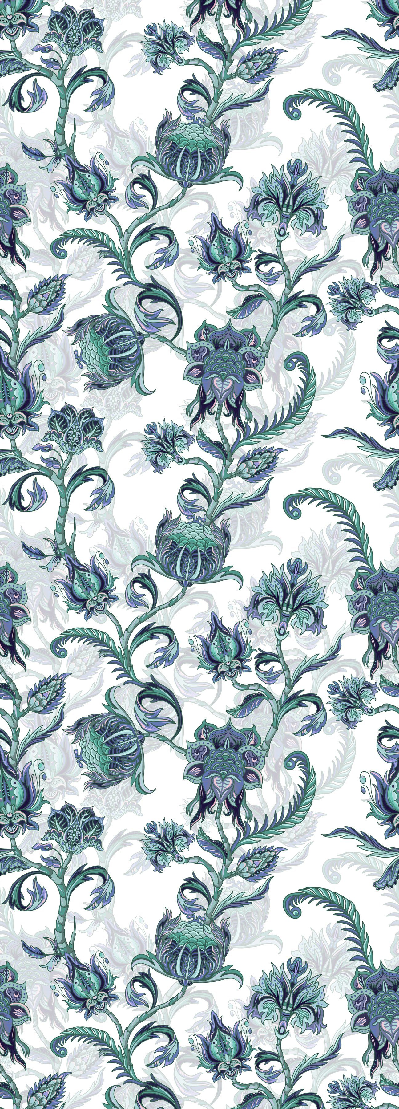 queence Vinyltapete Jade, glatt, Motiv, bedruckt, botanisch, floral, gemustert, natürlich, 90x250cm, selbstklebend, kinderleichte Anbringung, Sticker