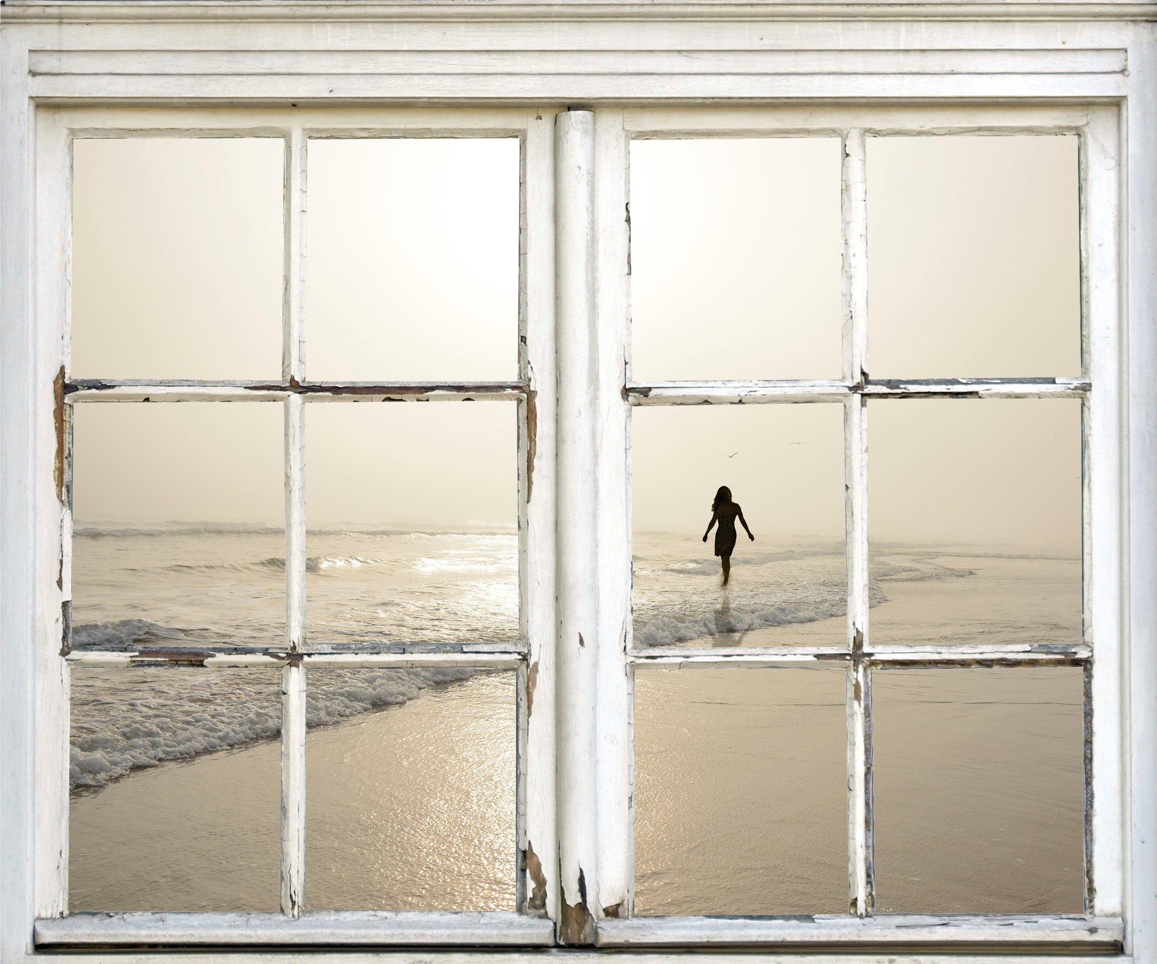 Der Wandsticker »Frau am Strand« von queence besticht mit einem romantischen Strandmotiv im sanften Farbenspiel. Im Gegenlicht der Sonne sind die Konturen einer Frau zu sehen, die am Strand entlang spaziert. Der aufgedruckte Sprossenrahmen in täuschend echter Optik vermittelt die Illusion, direkt durch ein Fenster zu schauen. Aus selbstklebender Folie in hochwertiger Qualität gefertigt, lässt sich das Wandtattoo mit geringem Aufwand auf verschiedenen Untergründen anbringen. Es haftet auf Fliesen und Kacheln, sodass es neben dem Wohn- und Schlafzimmer ebenfalls im Bad oder in der Küche verwendbar ist. Setzt einen angenehmen Akzent im Raum: der Wandsticker »Frau am Strand« von queence für effektvolle Dekorationsideen im Wandbereich.