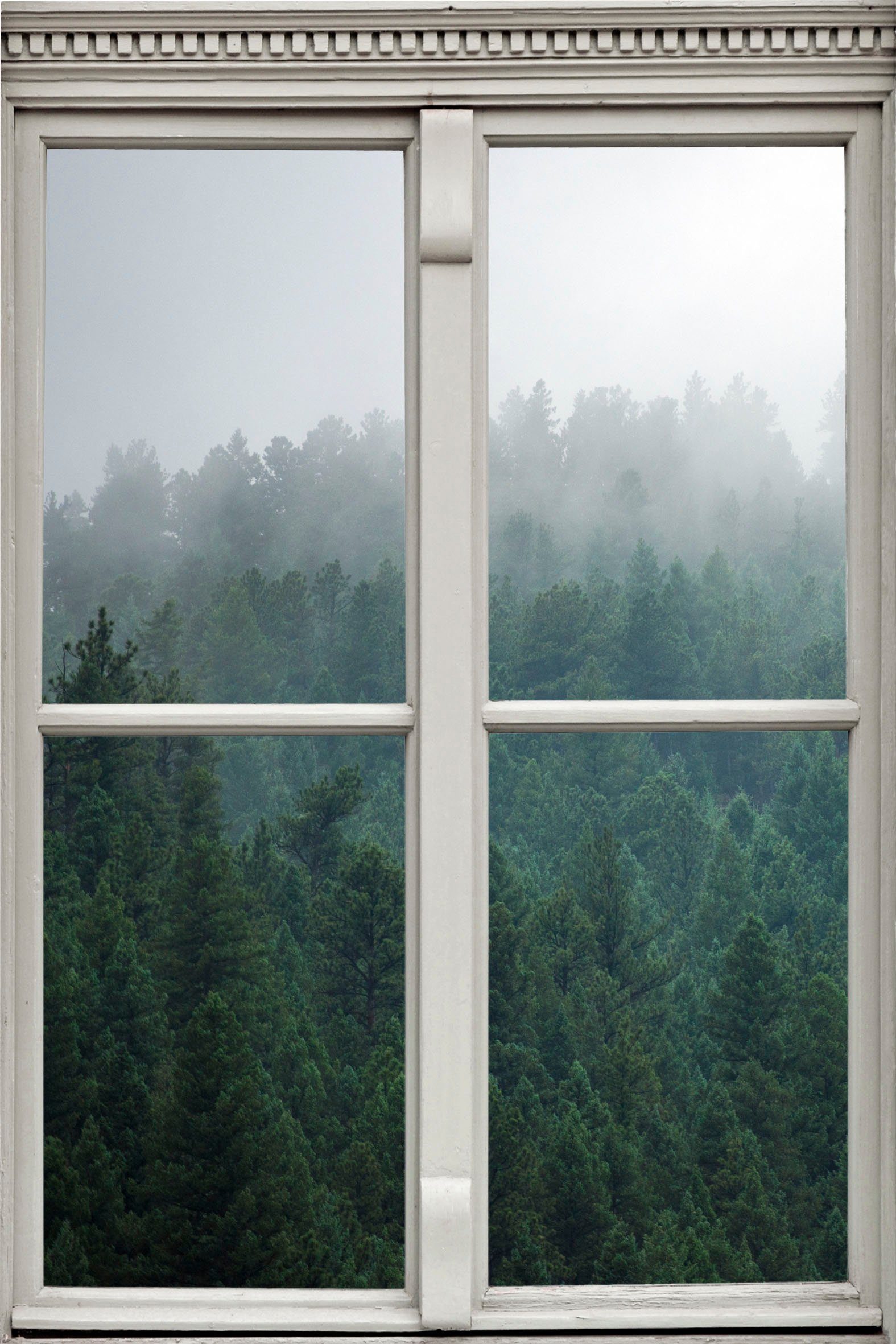queence Wandsticker Nebeliger Wald, Wandsticker, Wandbild, selbstklebend, 3D, Fenster