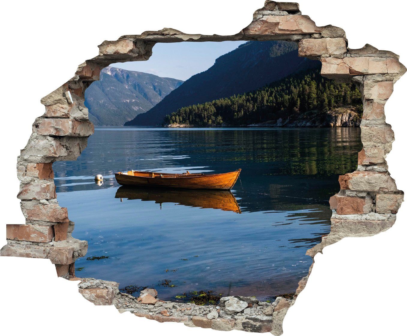 Dieses stilvolle Wandtattoo »See« aus dem Меню von queence sorgt für einen besonderen Blickfang. Aufgrund des 3D-Effekts entsteht der Eindruck, als könne direkt vom Sofa aus auf eine weite Seelandschaft samt kleinem Anglerboot geblickt werden. Diese besondere Dekoration schafft zahlreiche Gestaltungsmöglichkeiten und setzt einen kreativen Akzent in zahlreichen Einrichtungen. Die Anbringung gelingt denkbar einfach: Da die bedruckte Folie selbstklebend ist, lässt sie sich schnell und unkompliziert an der Wand befestigen. Lediglich der Untergrund sollte frei von Staub und Schmutz sein. Das stilvolle Wandtattoo »See« aus dem Меню von queence ist ein optisches Highlight für die heimischen vier Wände.