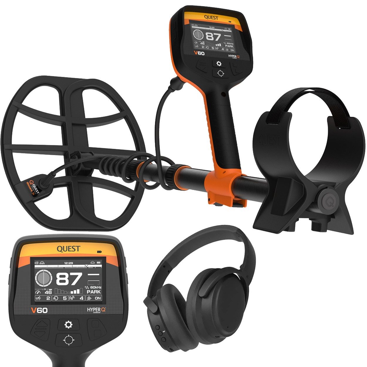 Der neue Quest V60 Metalldetektor ist mit der neuen HyperQ Multifrequenztechnik ausgestattet. Durch diese Technik erreicht der Quest V60 einen Frequenzbereich von 5-40kHz. Er ist bis zu 5m Wasserdicht und verfügt über ein flach zusammenschiebbares Gestänge, damit das Gerät problemlos in einen Rucksack passt (Breite 35cm - Длина 54cm). Der V60 wird mit kostenlosen Vibe Bluetooth Kopfhörern geliefert und ist mit einer großen Blizzard-Doppel-D Suchspule für eine sehr gute Tiefenleistung ausgestattet. Der integrierte 5600mAh Akku reicht bei voller Ladung zwischen 10-15 Suchstunden.