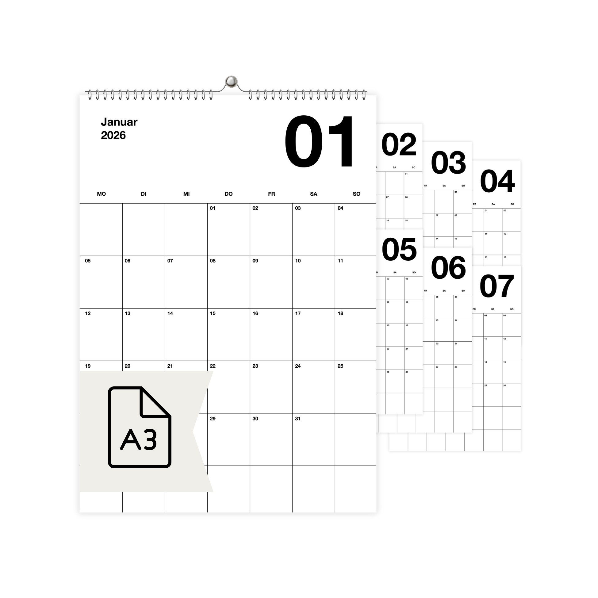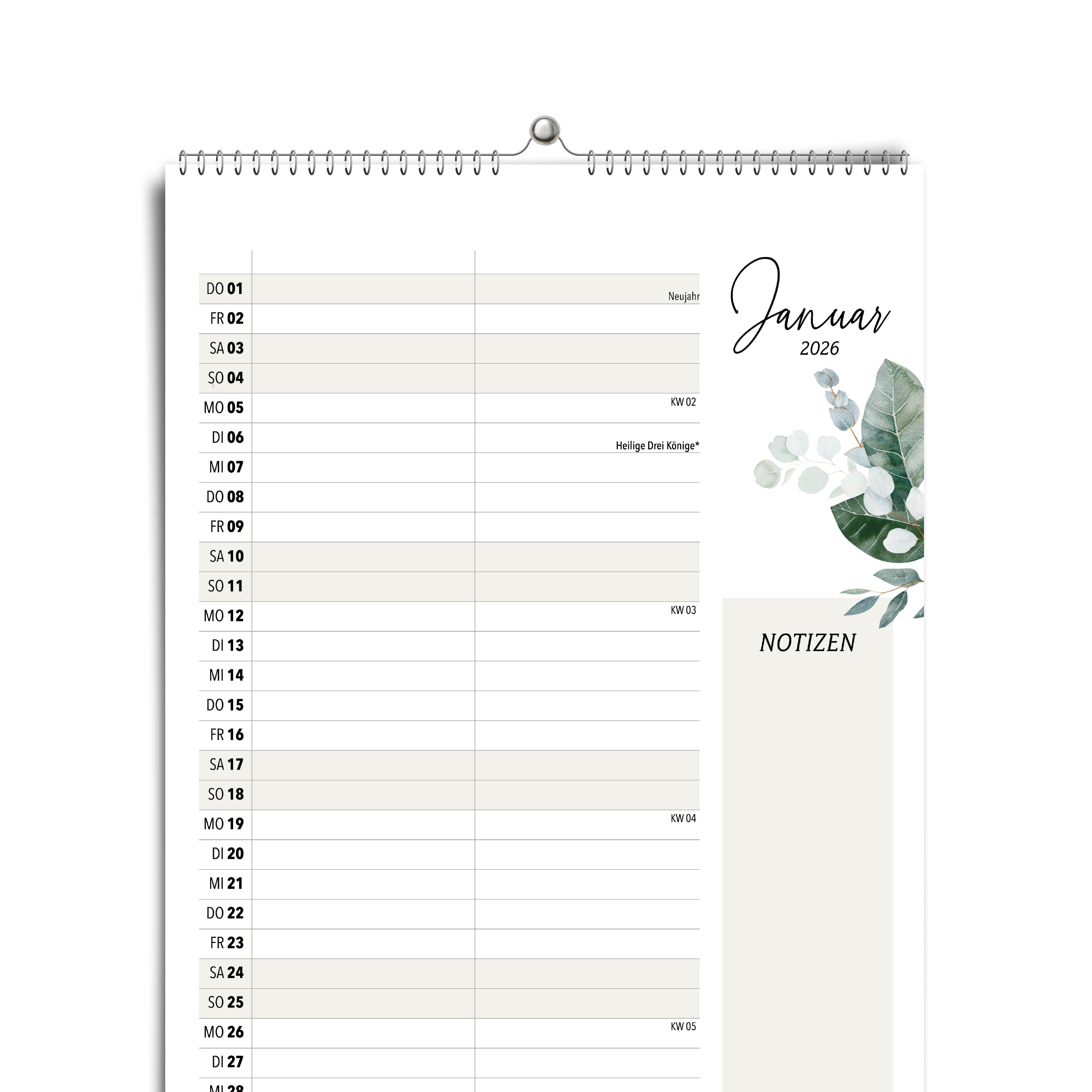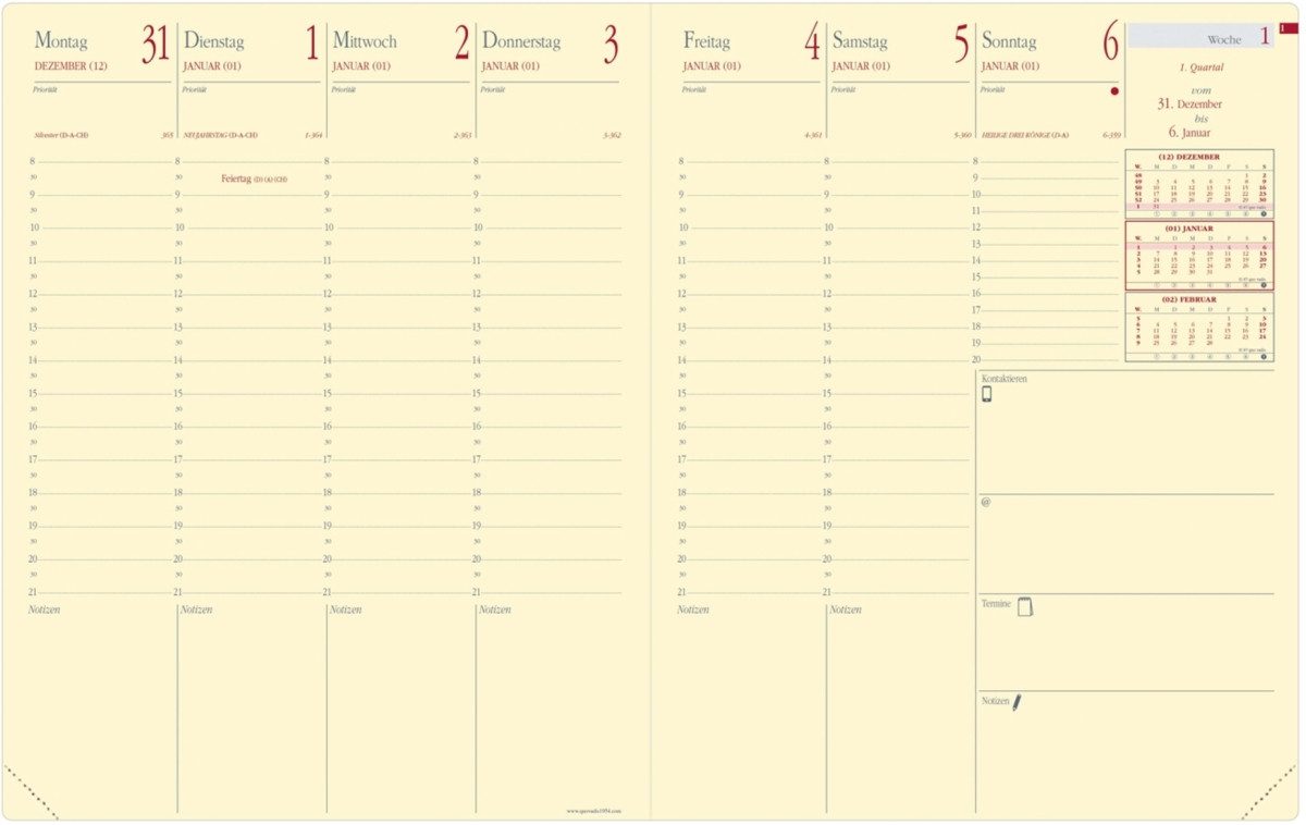 • Agenda Planing 1 Woche auf 2 Seiten mit Tagesnotizen