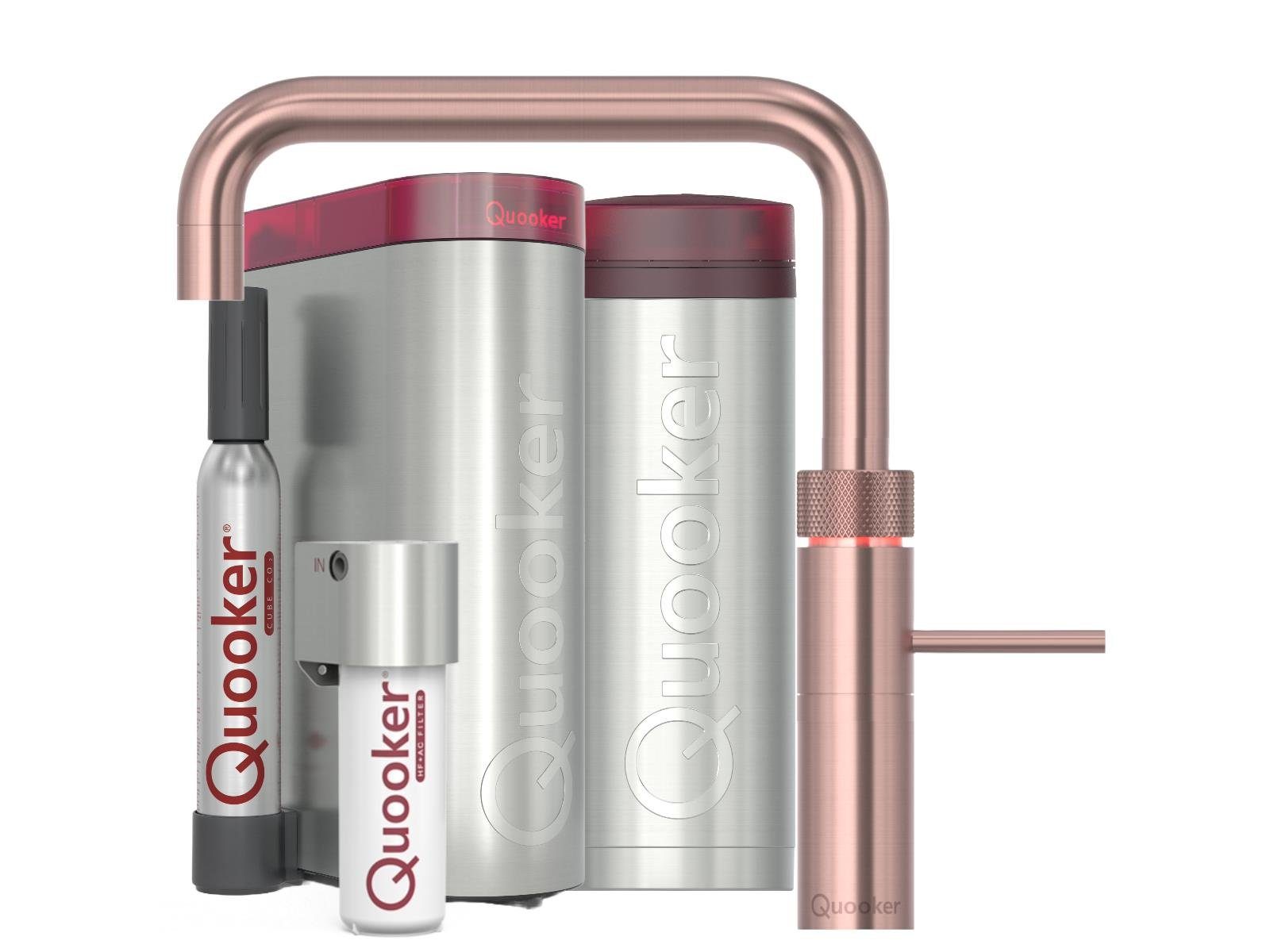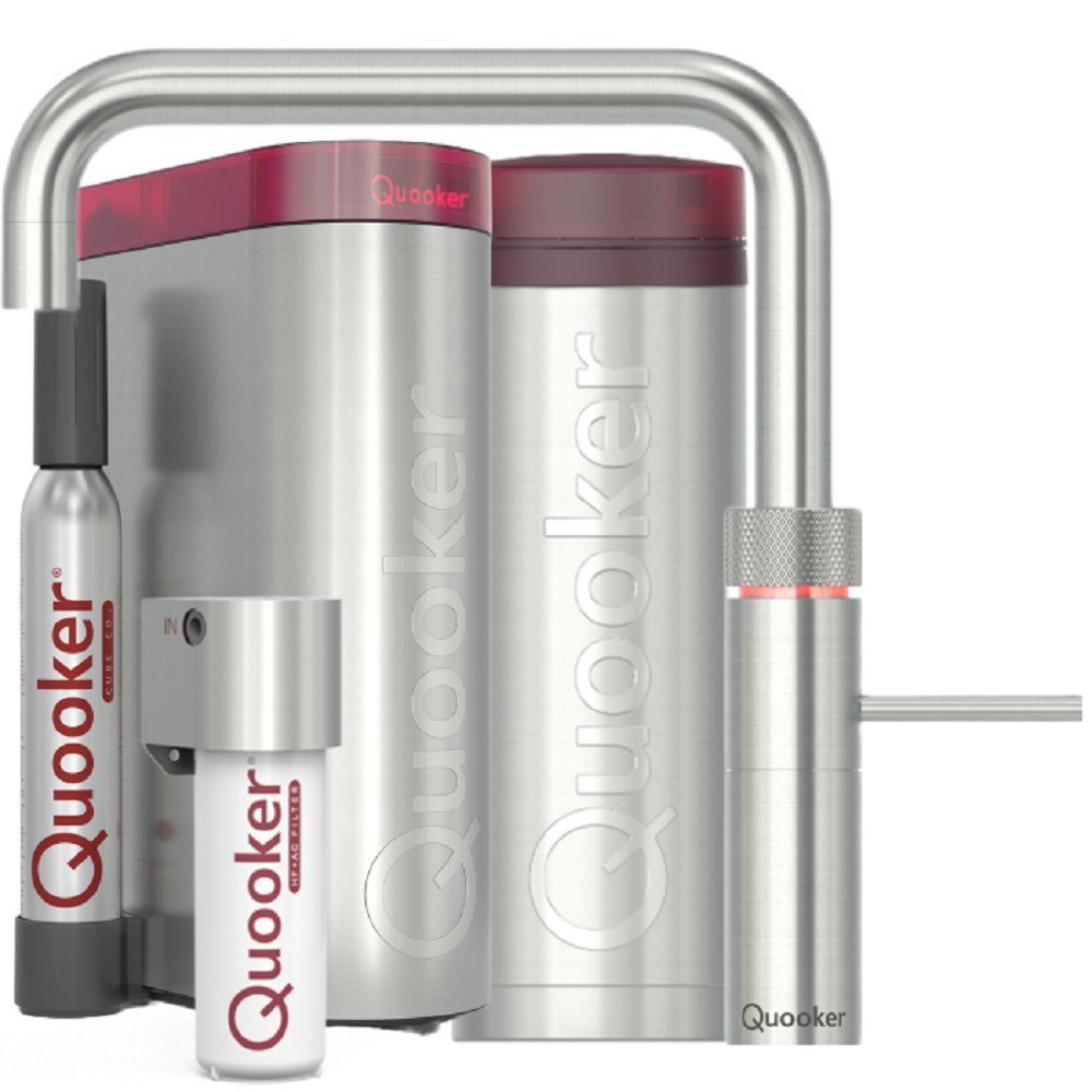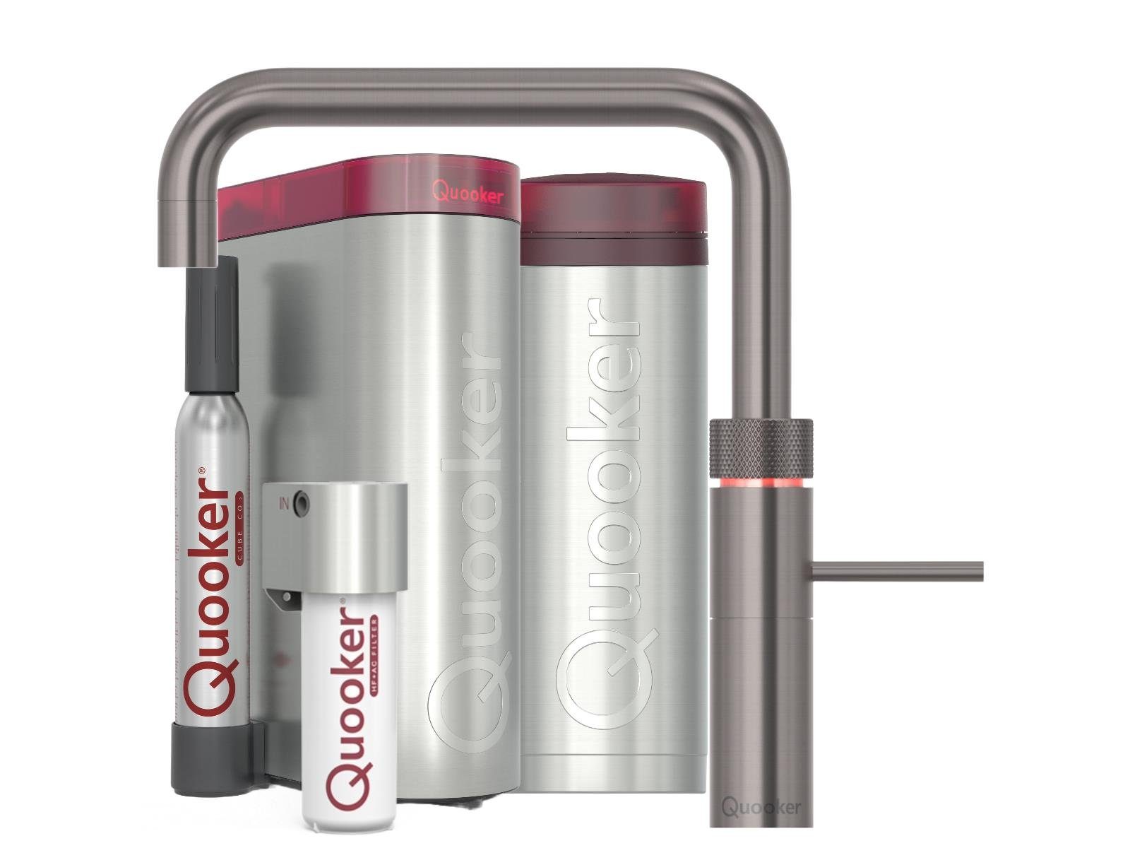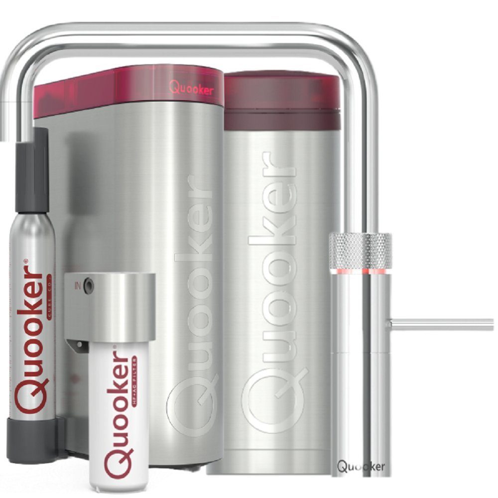 Erhalten Sie alles aus einem Hahn: kochendes, warmes und kaltes Wasser, und in Kombination mit dem CUBE von Quooker, auch gekühltes, gefiltertes sprudelndes und stilles Wasser.