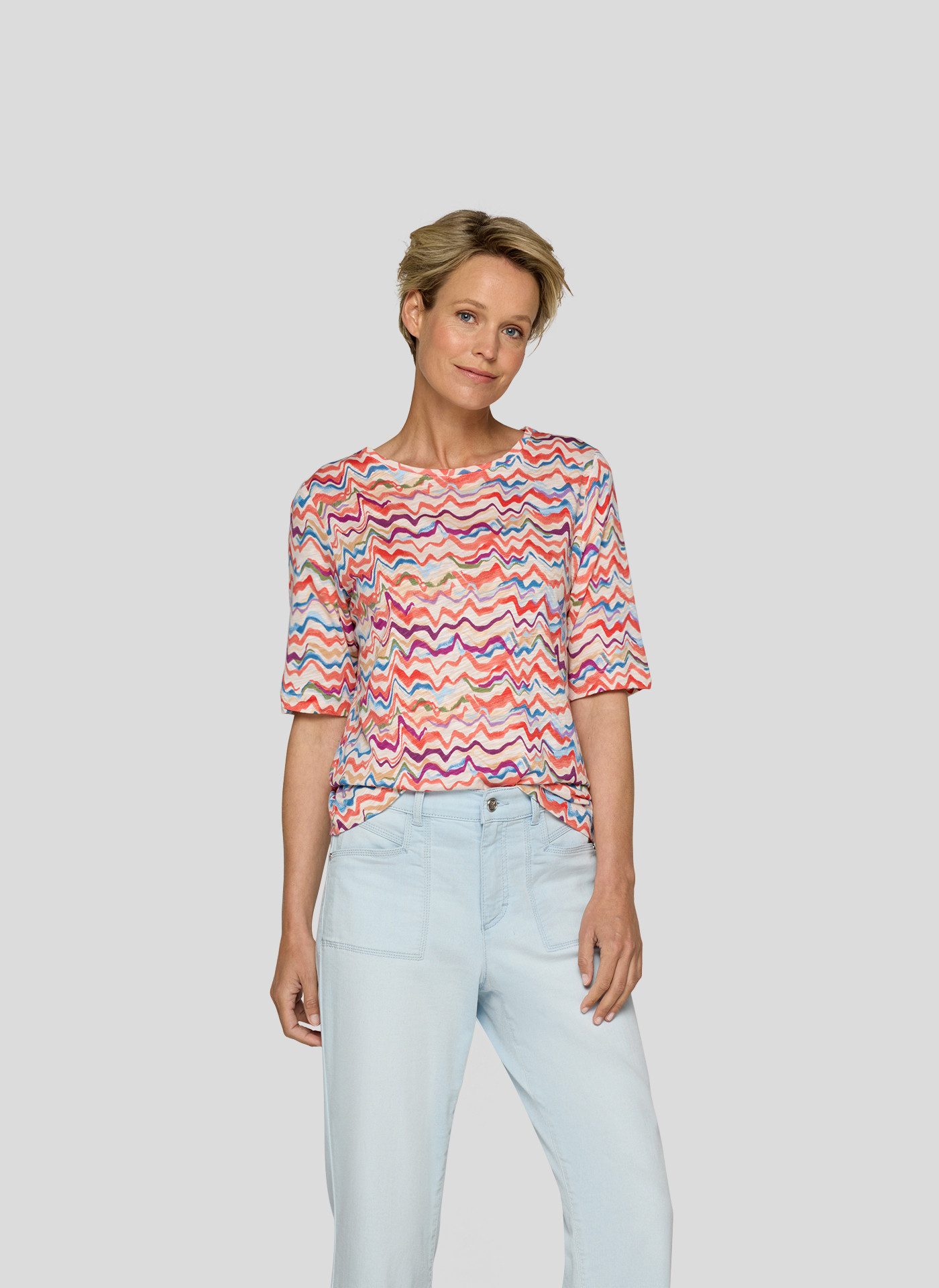 Das Rundhalsshirt von Rabe macht alles möglich — ob dezent, cool oder peppig. Es wirkt mit dem Aufdruck sowohl locker als auch frisch. Dieses Shirt ist hüftbedeckend sowie tailliert geschnitten, sodass deine Silhouette schön zur Geltung kommt.