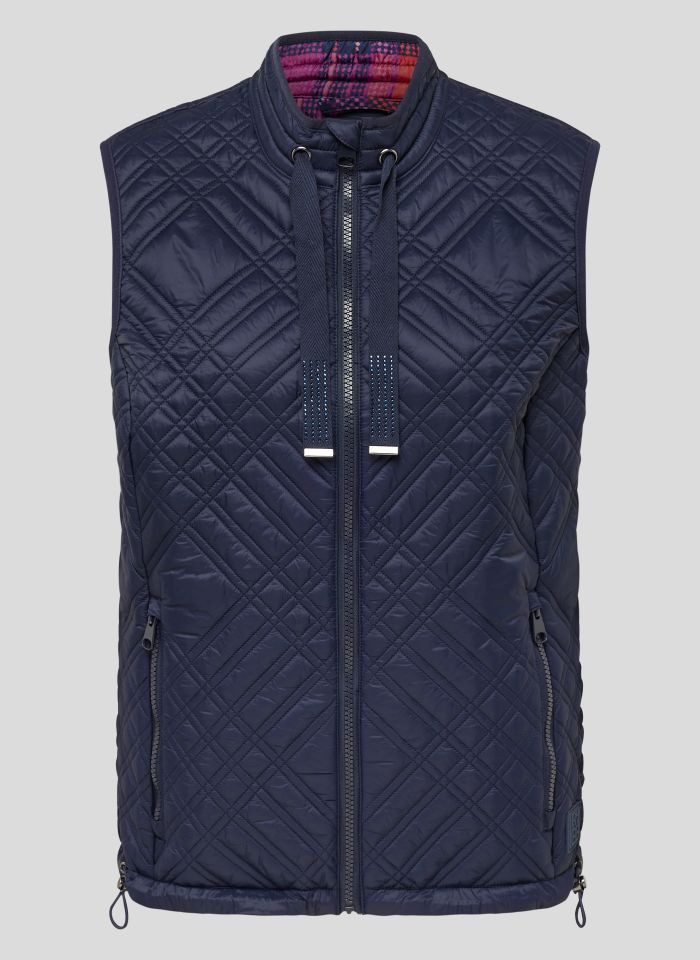 Diese Steppweste von Rabe ist ein stilvoller Begleiter für Übergangszeit und Freizeit. Der Stehkragen mit verstellbarem Kordelzug schützt vor Wind und verleiht der Weste eine sportive Note. Ein praktischer Reißverschluss, funktionale Taschen sowie ein elastischer Gummizug am Saum sorgen für hohen Tragekomfort und eine optimale Passform. Dank ihres modernen Designs lässt sich die Weste vielseitig kombinieren – ob zu Pullover, Longsleeve oder Bluse.