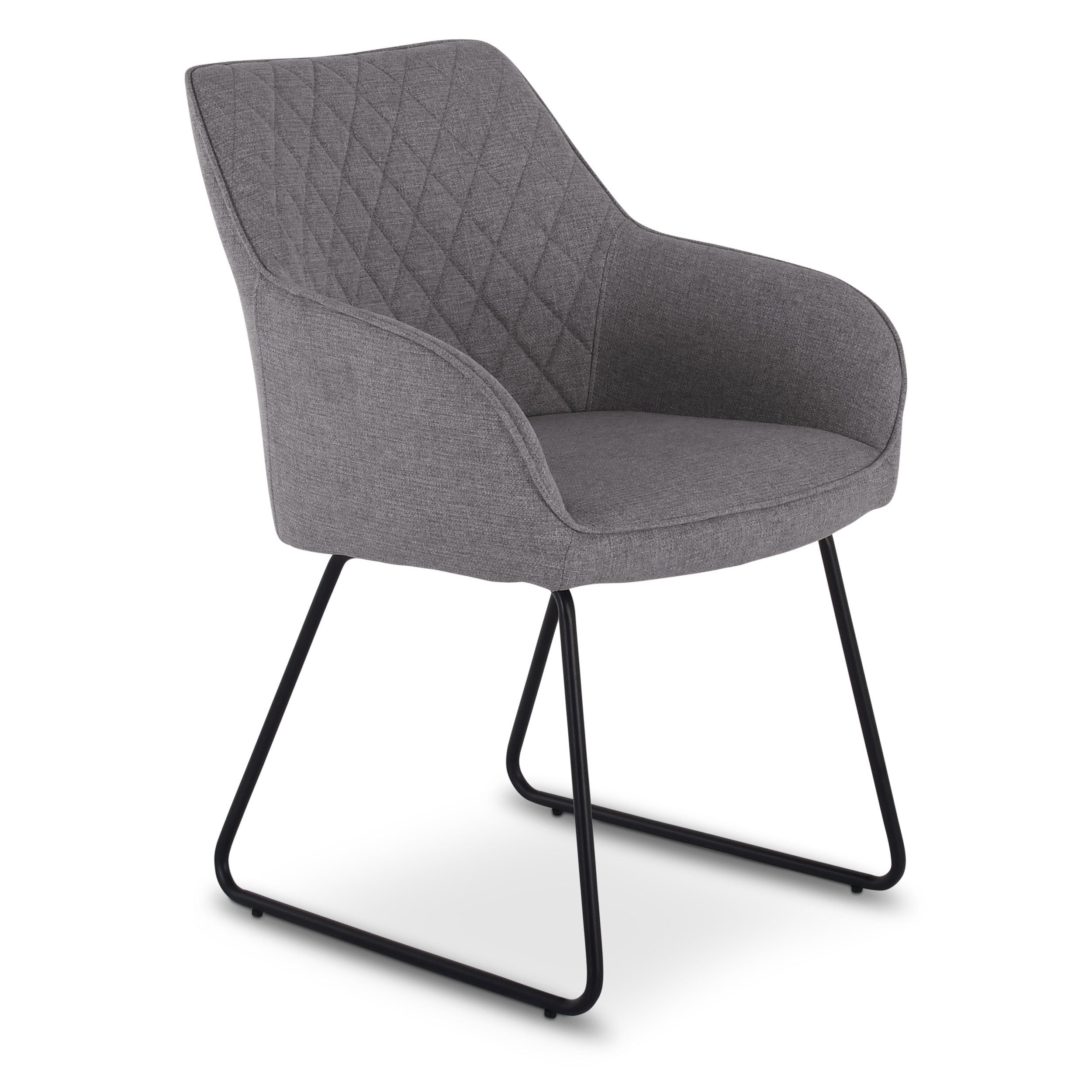 Wissenswertes | Moderne Optik: Mit Rautenmuster und Armlehnen, für Küche und Esszimmer Sitzqualität: Die ergonomische, gepolsterte Sitzschale bietet bequemen Komfort Gute Stabilität: Das Kufengestell aus Metall gewährleistet festen Stand Bodenschonend: Die Kunststofffüße schützen den Boden und sorgen für Stabilität Pflegeleicht: Dank Stoffbezug aus 100 % Polyester |