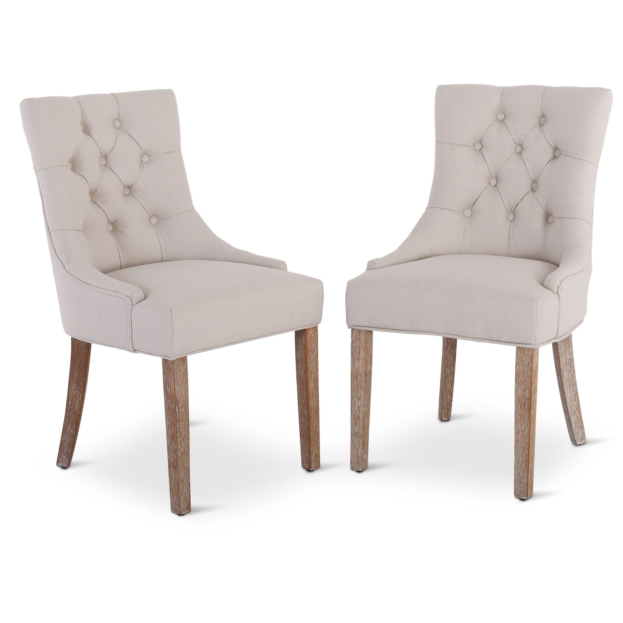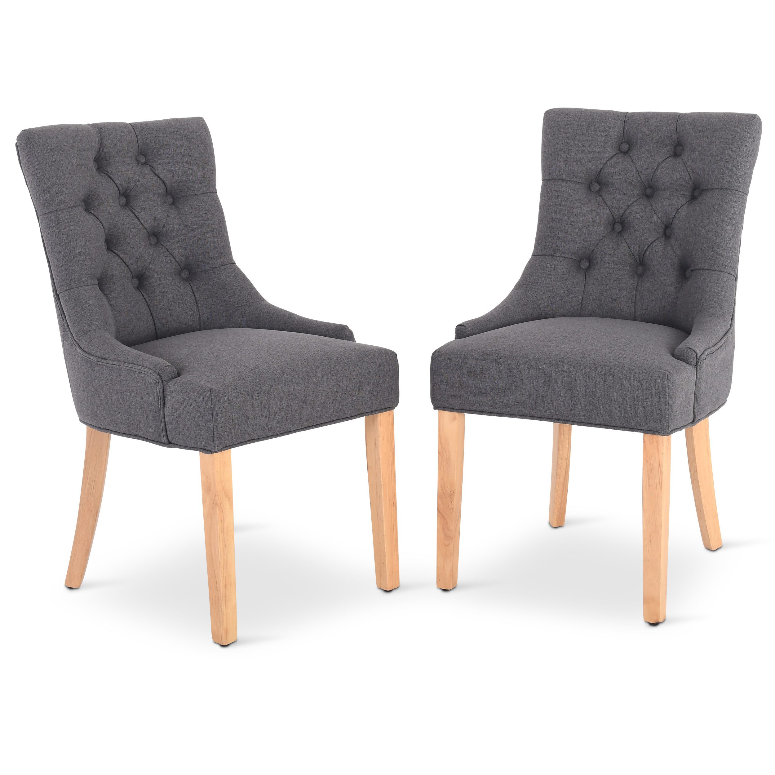 Wissenswertes | Landhausstil Esszimmerstuhl im 2er-Set, elegant & gemütlich Komfortabel: Hohe Rückenlehne & bequeme Polsterung Chesterfield-Design: Rückenlehnen mit Zierknöpfen Hingucker am Esstisch, perfekt für Wohnbereich, Küche und Esszimmer Stabiler Stand: Helle Massivholzbeine, vorne um 10 mm höhenverstellbar |