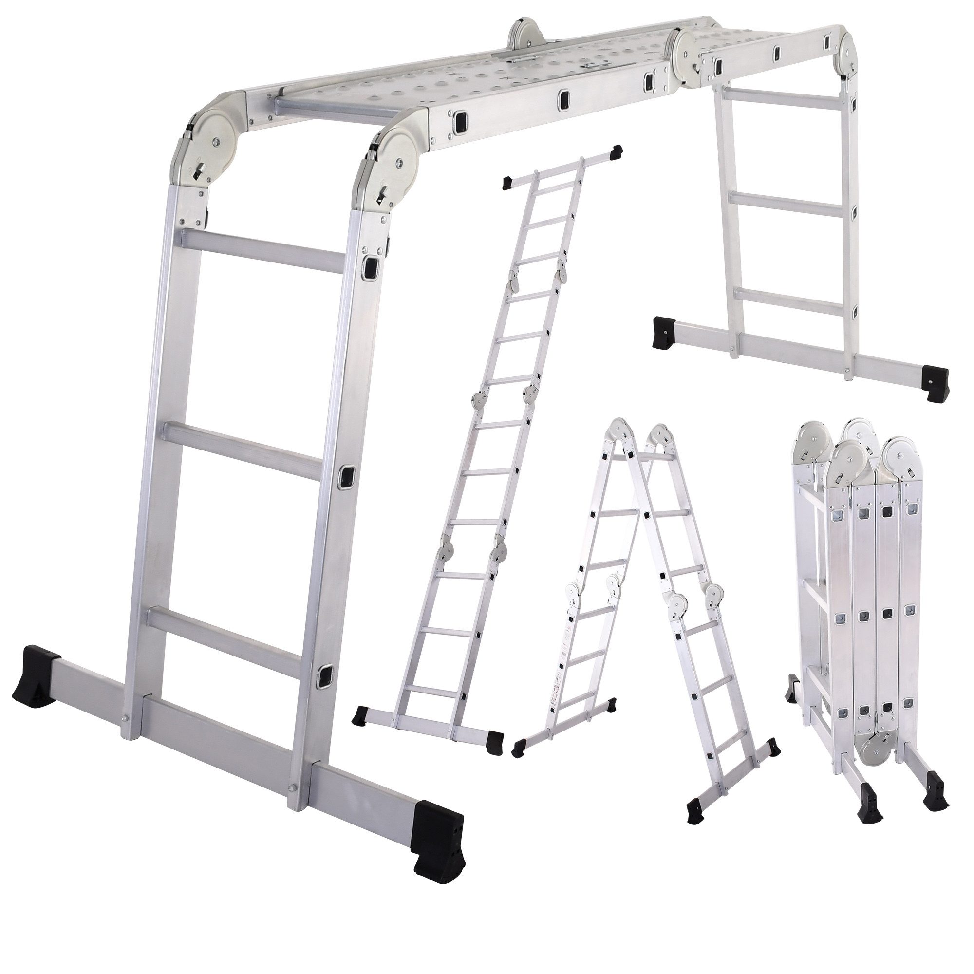 1× Raburg Mehrgelenkleiter aus Aluminium mit Arbeitsbühne, Anlege- & Bockleiterfunktion, klappbar