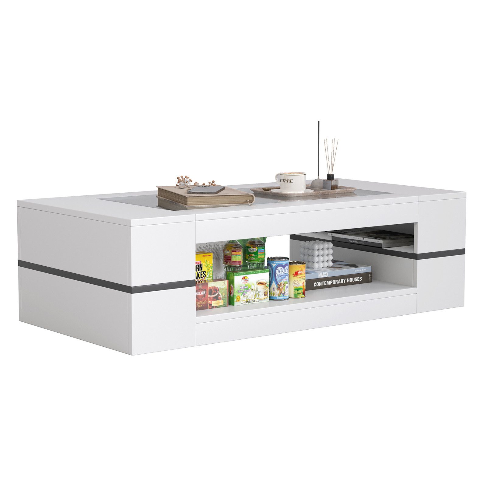 [Vielfältige Farbauswahl] - Dieser Kaffeetisch ist in drei verschiedenen Farben erhältlich - weiß, schwarz und naturholzfarben. So können Sie die Farbe entsprechend Ihrer persönlichen Vorlieben und dem vorhandenen Möbelstil wählen. Dieser Couchtisch ist mit veredeltem Temperglas hergestellt. Es kann Belastungen von bis zu [65] Kilogramm problemlos aushalten, sodass Sie problemlos Ihre Getränke, Bücher oder andere Gegenstände darauf abstellen können, ohne Befürchtung einer Beschädigung oder Durchbrechung des Glases. Selbst wenn etwas schweres zufällig auf den Tisch fällt, bleibt das Glas meistens intakt und bietet somit langfristige Stabilität und Zuverlässigkeit.
