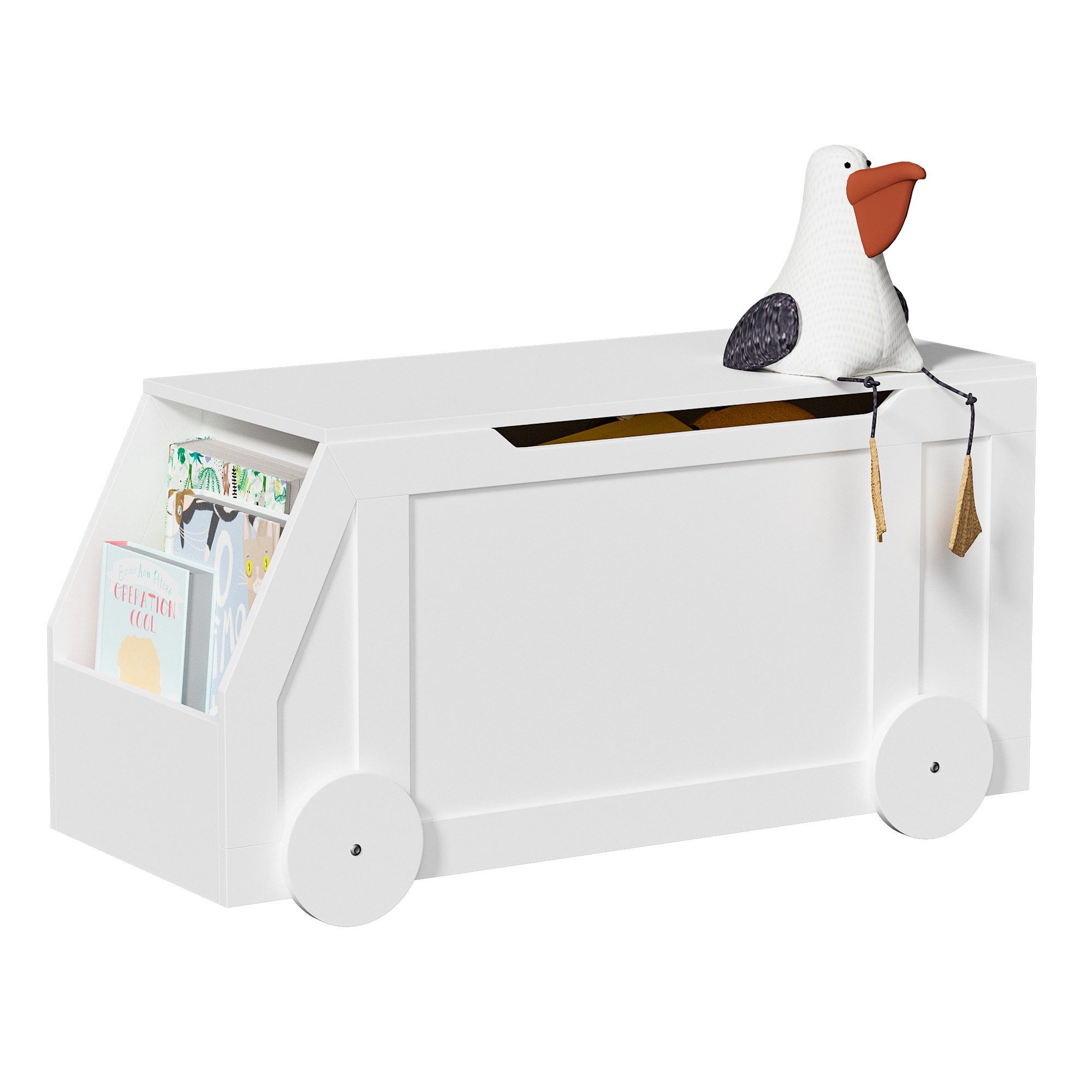 Das Spielzeug liegt überall verstreut und Du möchtest Ordnung schaffen? Kein Problem mit der süßen Aufbewahrungsbox im Auto Design. Die vielseitige Spielzeugtruhe bietet reichlich Platz für sämtliche Spielsachen. Die freibeweglichen Räder laufen besonders leise. So kann die Spielzeugtruhe überall hin mitgenommen werden, wo sie gerade gebraucht wird. Für Kinder ab 12 Monaten!