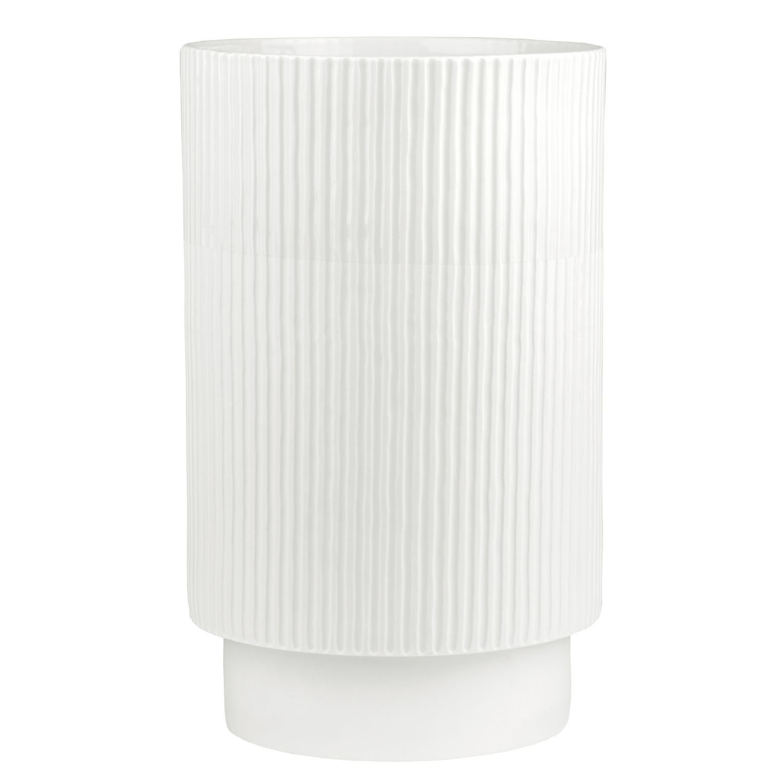 Das puristische Design der Kollektion geradlinig begeistert mit linearer Eleganz und ist der ideale Begleiter durchs ganze Jahr. Das weiße Porzellan ist mit einem feinem Streifenrelief versehen, was sowohl die Frische von einem Strauß Frühlingsblumen als auch den würzigen Duft von Tannenzweigen an Weihnachten unterstreicht. Ein weiteres Merkmal der Serie ist der abgesetzte Sockel, auf dem die Vase zu schweben scheint. Dies verleiht ihr eine elegante Leichtigkeit, welche ideal zur schlanken Form passt. In der großen Варианты ist die Vase der Serie Geradlinig 34,7 cm hoch und hat einen Durchmesser von 21,6 cm.