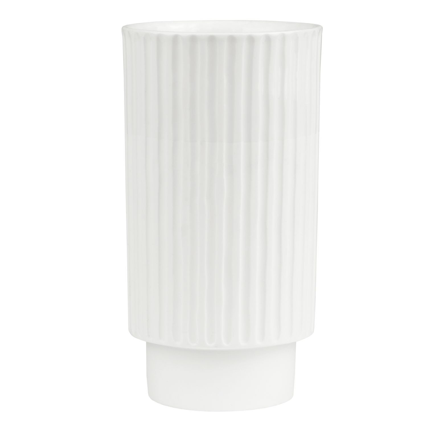 Das puristische Design der Kollektion geradlinig begeistert mit linearer Eleganz und ist der ideale Begleiter durchs ganze Jahr. Das weiße Porzellan ist mit einem feinem Streifenrelief versehen, was sowohl die Frische von einem Strauß Frühlingsblumen als auch den würzigen Duft von Tannenzweigen an Weihnachten unterstreicht. Ein weiteres Merkmal der Serie ist der abgesetzte Sockel, auf dem die Vase zu schweben scheint. Dies verleiht ihr eine elegante Leichtigkeit, welche ideal zur schlanken Form passt. In der kleinen Варианты ist die Vase der Serie Geradlinig 17 cm hoch und hat einen Durchmesser von 9 cm.