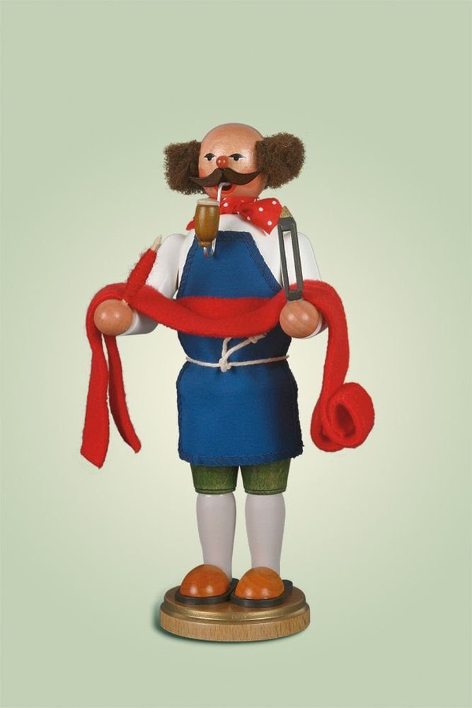 Räuchermann Handweber mit Stoff Dieser tolle Räuchermann hat eine Размер von 22 cm. Die Figur steht frei auf einem Sockel und hat eine Funktion für normale Räucherkerzen. Der Handweber trägt seine blaue Arbeitsschürze und hält in den Händen ein großes Stück Stoff. Der Räuchermann ist vollständig aus Holz gefertigt und bunt gestaltet. Das Unterteil mit dem Boden lässt sich abnehmen und darauf wird die Räucherkerze gestellt. Всеs wird in verschiedenen Arbeitsschritten komplett in Seiffen in einem kleinen Betrieb mit langer Tradition hergestellt Höhe 22cm NEU |