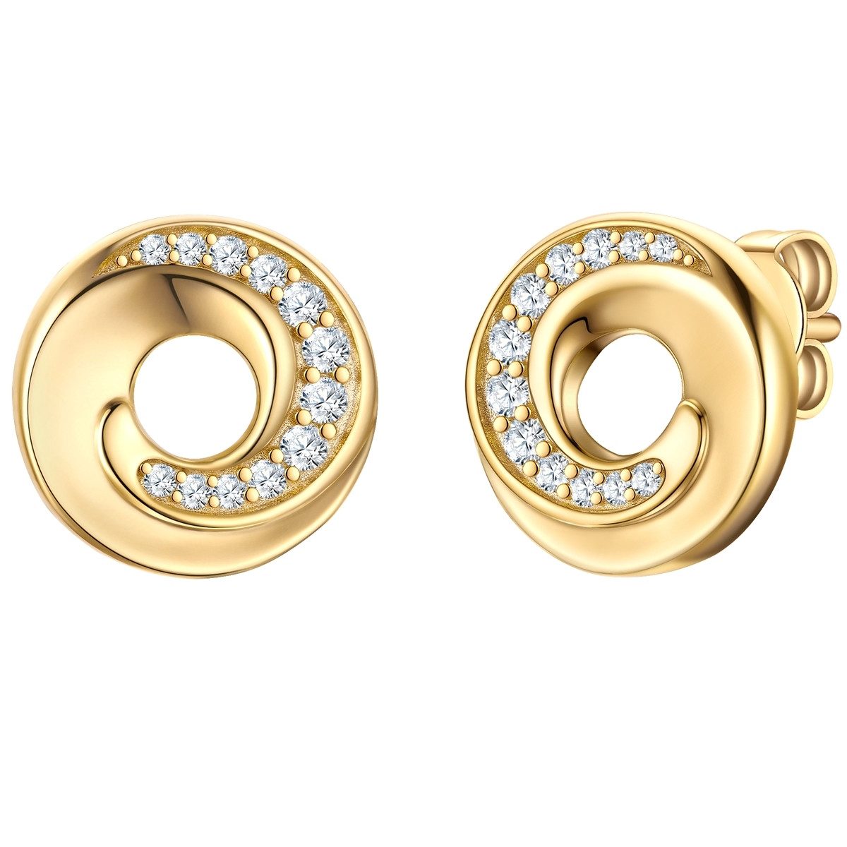 Sie tragen bevorzugt Motivschmuck mit edlen Glamour-Akzenten? Dann können Sie diesen stilvollen Ohrsteckern des Labels Rafaela Donata nicht widerstehen: Ein schwungvoll gewundener Kreis symbolisiert Unendlichkeit und Vollkommenheit, gefertigt aus 925er Sterling Silber und mit einer klassischen Gelbgoldbeschichtung veredelt. Highlight ist das partielle Dekorband aus glitzernden Zirkoniakristallen - ein Must-Have für alle Fans des warm glänzenden Edelmetalls. Ein praktischer Steckverschluss sorgt für einfaches An- und Ablegen. Der Hingucker am Ohrläppchen wertet jeden Look auf und hat das Zeug zum Every-Day-Piece.