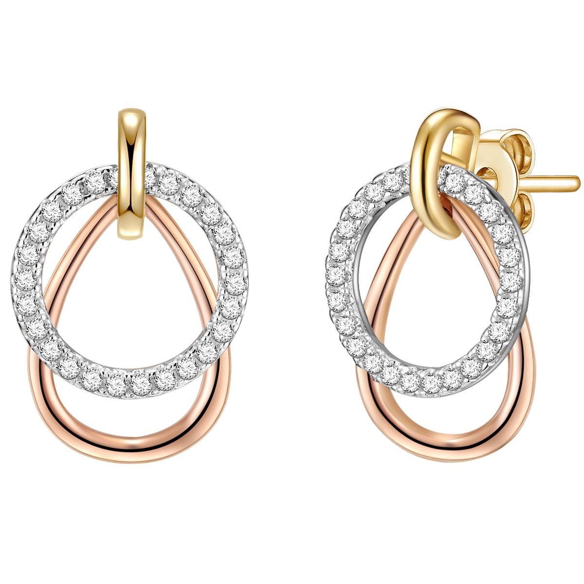 Es steht ein besonderer Anlass bevor und Sie können sich nicht entscheiden, welcher Ohrschmuck jetzt am besten passt? Dann können wir Ihnen diese zirkoniabesetzten Ohrstecker aus dem Hause Rafaela Donata empfehlen. Sie sind aus rhodiniertem 925er Sterlingsilber gefertigt und somit auch bei häufigem Tragen bestens vor dem Anlaufen geschützt. Doch das sind nur die Basics, denn diese Stecker überzeugen vor allem dank ihrer hohen Kombinierbarkeit, welche durch ihr spezielles Tricolor-Design erreicht wird. Außerdem ist die Zusammenstellung der Kreis- und Tropfenformen derart zeitlos, dass sie zu Frauen jeden Alters und den unterschiedlichsten Modestilen einwandfrei passen.