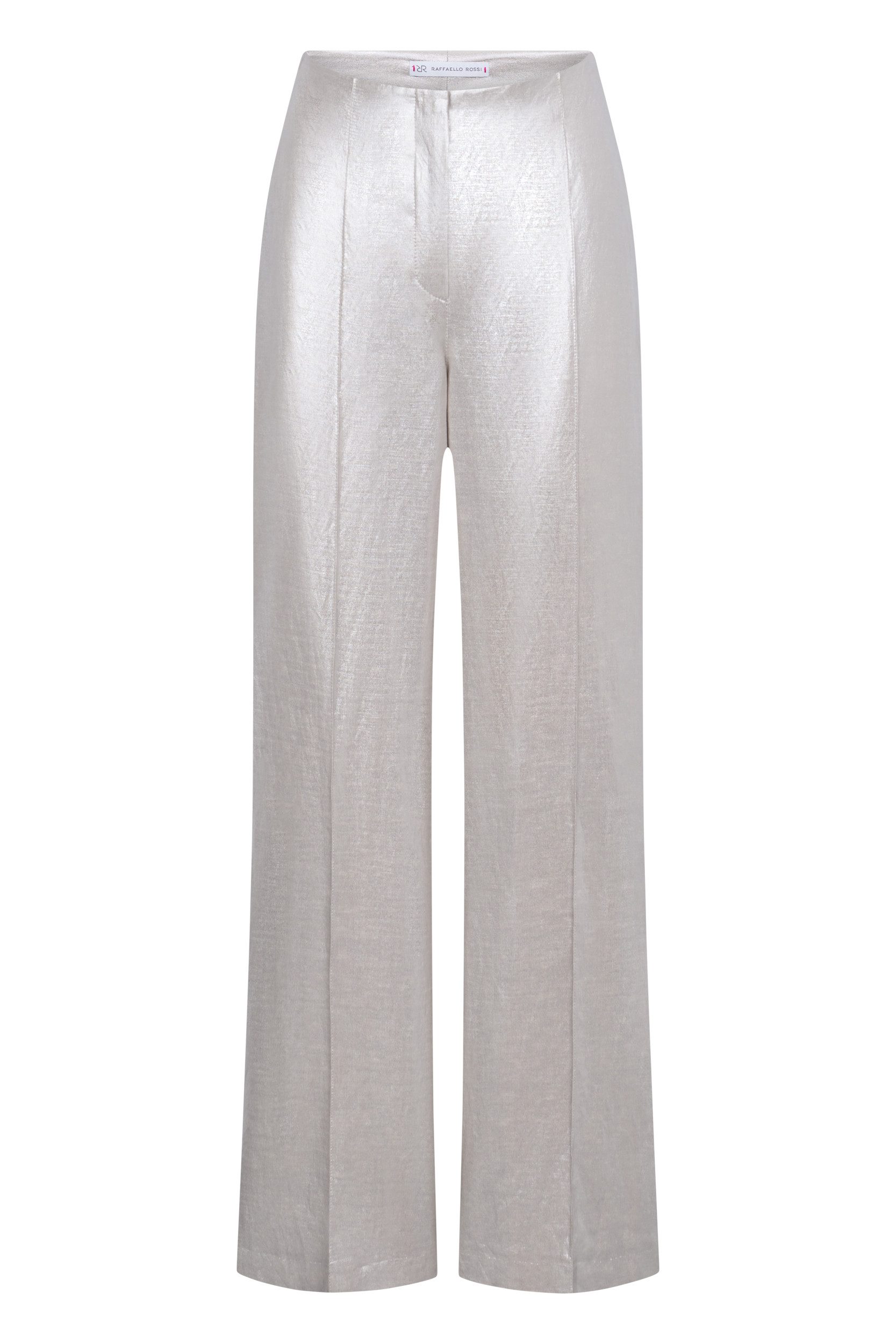 Verliebe Dich in den eleganten Schwung der Marlene Hose AgathaTräumst Du von einer Hose, die nicht nur stilvoll aussieht, sondern sich auch himmlisch anfühlt? Die Marlene Hose Agatha von Raffaello Rossi könnte genau das Richtige für Dich sein! Mit ihrem fließenden Schnitt und dem hochgeschnittenen Bund zaubert sie eine unwiderstehlich feminine Silhouette, die Deine Taille perfekt in Szene setzt.Luftig und Leicht – Perfekt für warme TageDank des sommerlich-weichen Mixes aus Viskose und Leinen bietet die Hose ein angenehm kühles Tragegefühl. Der Stoff schmiegt sich sanft an Deine Haut an, ohne einzuengen – ideal für heiße Sommertage oder entspannte Abende am Strand. Der glänzende Folienprint verleiht der Hose zudem einen Hauch von Glamour, der in der Sonne wunderschön schimmert.Eleganz, die begeistertDie Marlene Hose Agatha ist mehr als nur eine Hose – sie ist ein Statement. Der lange und weite Schnitt fließt elegant bei jedem Schritt mit und betont Deine Beine, ohne zu viel zu zeigen. Die hohe Leibhöhe und die knöchellange Длина strecken optisch und machen sie zum perfekten Partner für sowohl flache Sandalen als auch schicke High Heels.Ob für das Büro, einen entspannten Stadtbummel oder eine schicke Abendveranstaltung – diese Hose ist vielseitig kombinierbar und immer eine ausgezeichnete Wahl. Fließender, weiter Schnitt für maximale Bewegungsfreiheit Hoher Bund betont die Taille und schafft eine elegante Figur Angenehmer Tragekomfort durch Viskose-Leinen-Mix Glänzender Folienprint als eleganter Eyecatcher Vielseitig kombinierbar für verschiedene AnlässeErlebe selbst, wie die Marlene Hose Agatha Deine Garderobe bereichert und Dir ein neues Gefühl von Freiheit und Eleganz verleiht!