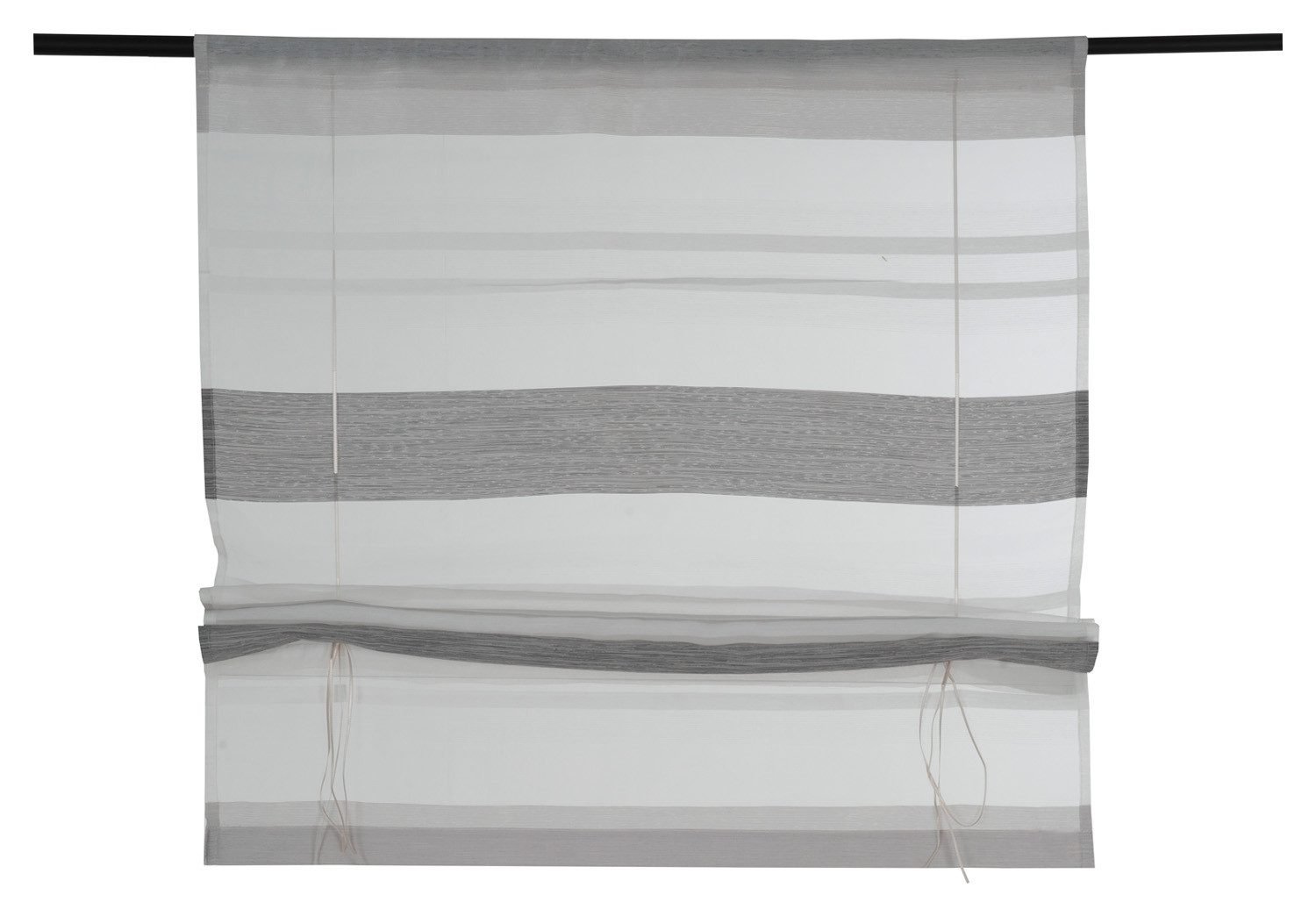 Der Raffrollo KIRA in Weiß mit stilvollen Querstreifen in Stahlgrau bringt Eleganz und Leichtigkeit in helle Räume. Er bietet Schutz vor blendenden Sonnenstrahlen, während es gleichzeitig genügend Licht durchlässt. Das transparente Material sorgt für eine angenehme Atmosphäre. Mit einer Breite von 80 cm und einer Длина von 130 cm ist es ideal für Fenster unterschiedlicher Größen geeignet.