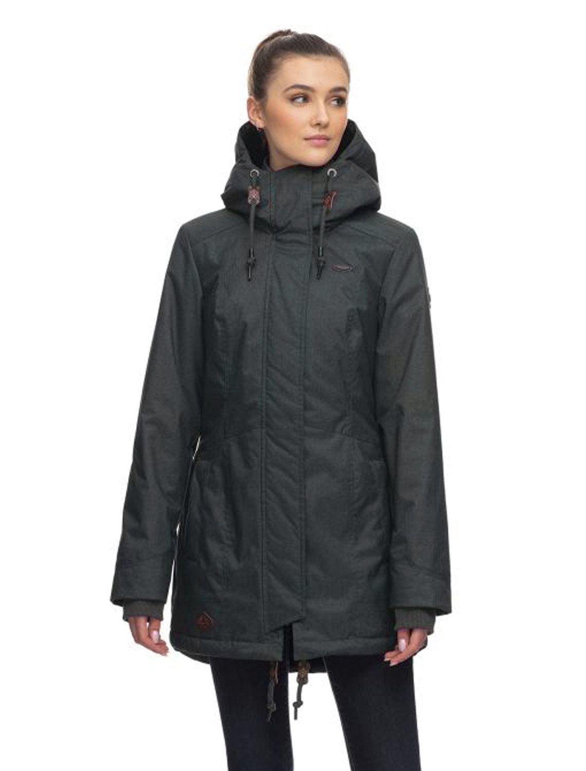 Ragwear Tunned Coat - Angesagter Damen Wintermantel mit großer Kapuze, weichem Teddyfell-Futter und dicken Tunnelzugkordeln im Streetwear Style von Ragwear!!! Winterjacke aus griffigem, wasserdichtem Obermaterial und kuscheligem Innenfutter mit Teddyfell bis in die Kapuze, das für sehr hohen Tragekomfort sorgt. Der Damen Winter Mantel hat perfekte Длина bis über den Po, der taillierte Schnitt ist echter Figurschmeichler, Tunnelzugkordeln am Jackensaum dienen als Windschutz. Mit dem Parka ist man super geschützt vor Wind und Kälte, dank des hoch schließenden gefütterten Kragens, den gefütterten Eingriffstaschen, weichen Rippstrickbündchen und warmem Innenfutter. Stylischer Damen Winterparka mit vielen praktischen und modischen Details - ein echtes Lieblingsteil für die kalte Jahreszeit! Features: Moderner Damen Winterparka von Ragwear, 100% vegan hergestellt, Top Qualität, perfekt geschnittene, taillierte Form, Griffiges Obermaterial (wasserdicht und winddicht), Innenfutter aus kuschelig weichem Teddyfell, Große Kapuze mit kuschelig weichem Teddy-Innenfutter, Stylische Tunnelzugkordeln an Kapuze (Weite regulierbar), Mit Druckknopfleiste verdeckter Front-Reißverschluss, Taillierter Schnitt, perfekte Длина bis über den Po, Verstellbare Tunnelzugkordeln am Jackensaum (Windschutz), Hoch schließende Jacke (Kälteschutz für den Hals) mit 2-Wege Frontreißverschluss, Warme Rippstrickbündchen an den Ärmelenden, 2 seitliche Eingriffstaschen mit Reißverschlüssen (warm gefüttert), 2 Klappentaschen mit Druckknopf, 1 Innentasche mit Reißverschluss, Zahlreiche Logo Patches aus Kunstleder, Logogeprägte Kunstleder Anfasser, Maschinenwaschbar bei 30°C