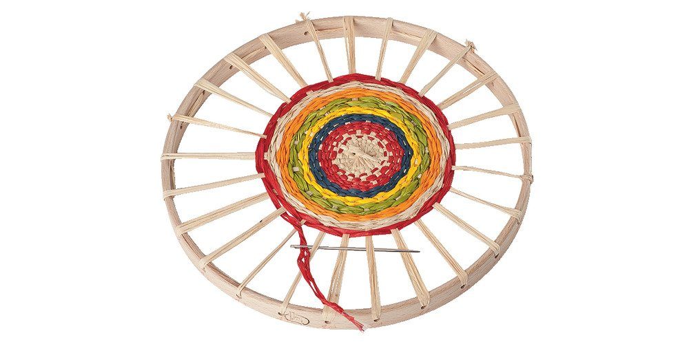 Der Rundwebrahmen, Ø 21 cm, besteht aus einem hochwertigen Holzring mit vorgebohrten Löchern. Er wird mit Webnadel und Anleitung geliefert.