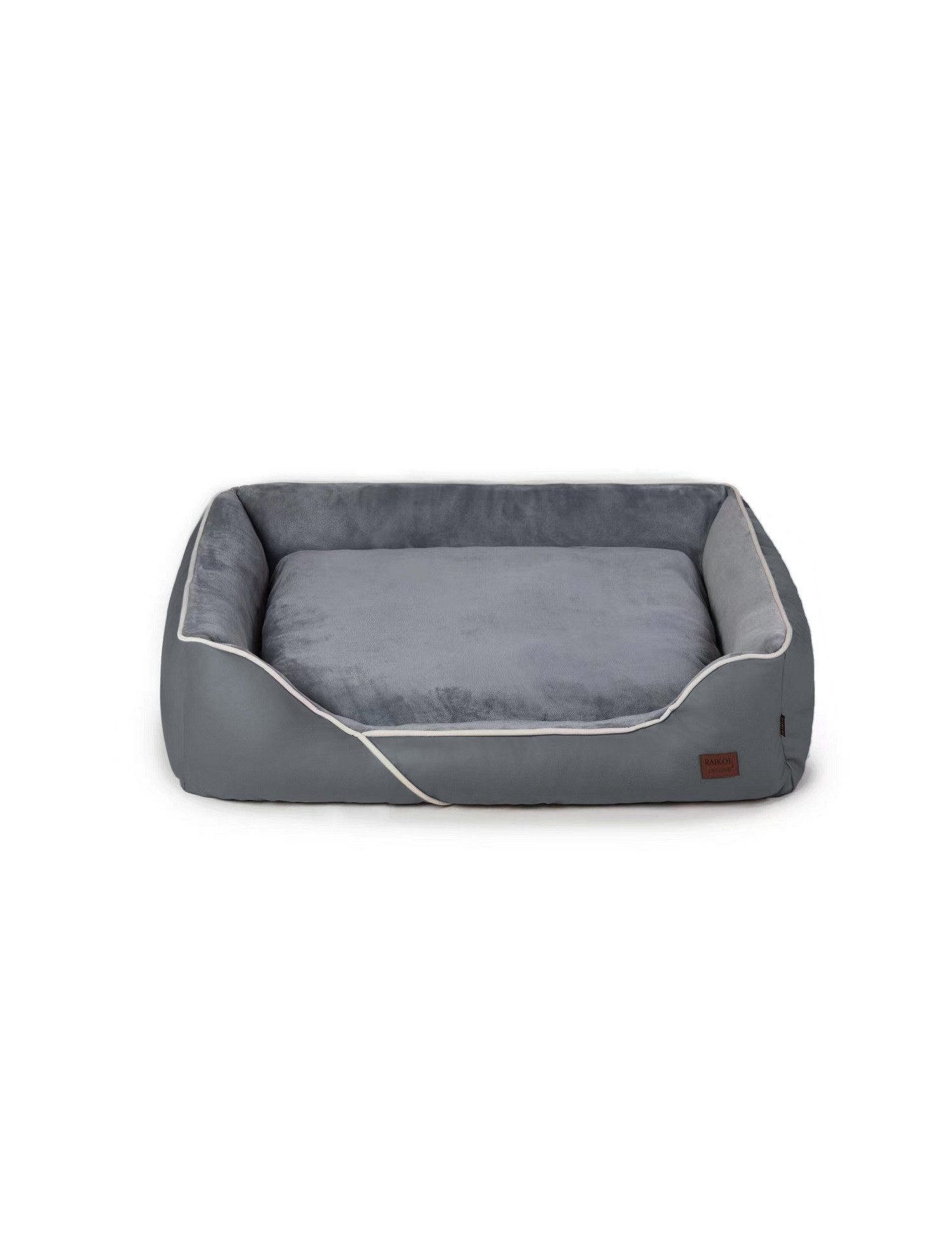 Mehrere Größen und Farben – Das Hundebett ist in drei Größen erhältlich: 80x60 cm, 100x80 cm, 120x90 cm und in sechs Farben: Hellgrau, Dunkelgrau/Hellgrau, Braun/Hellgrau, Blau/Hellgrau, Dunkelgrün/Hellgrau, Schwarz/Hellgrau.