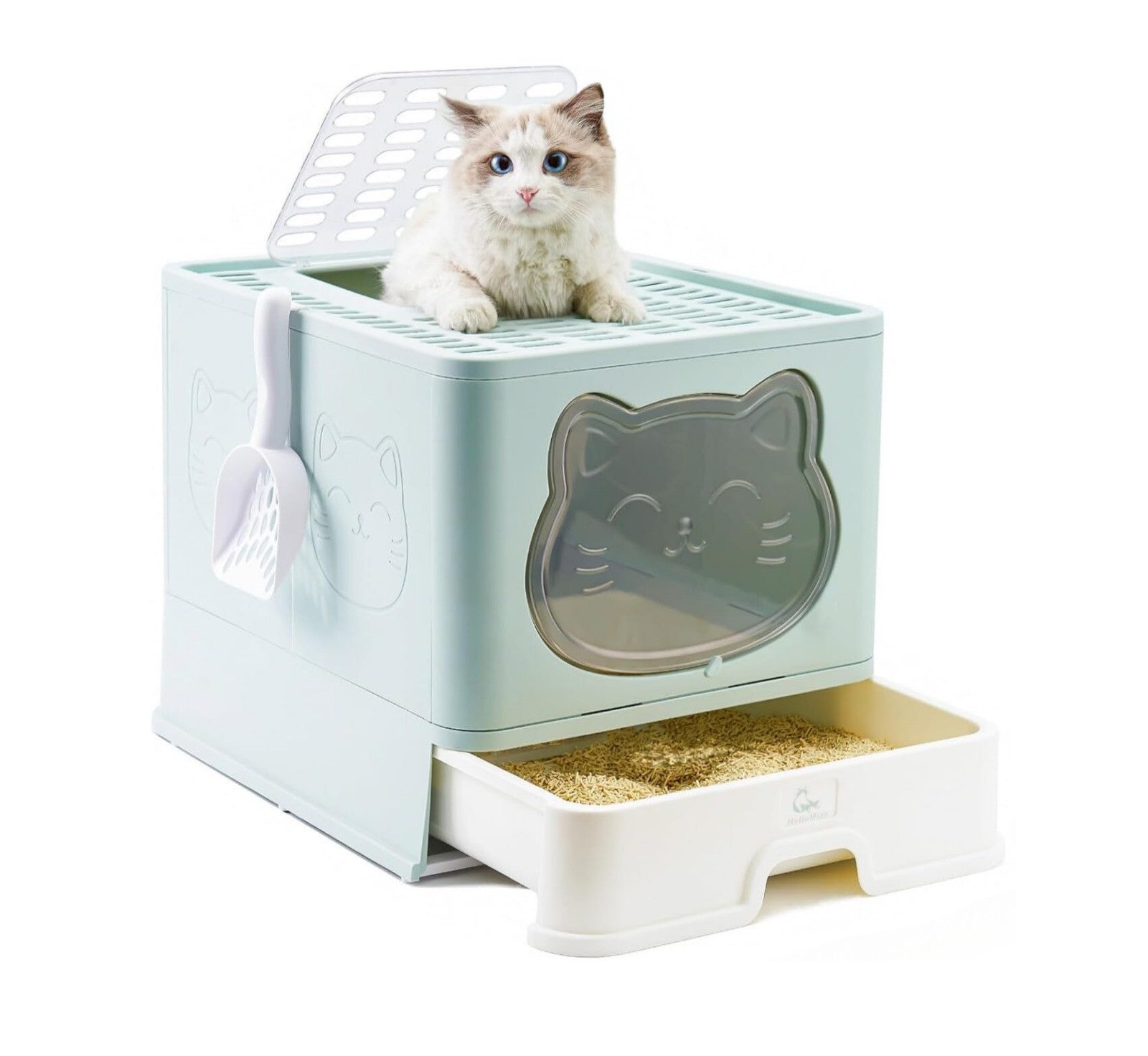 FLEXIBILITÄT: Die faltbare Katzentoilette mit Front- und Top-Eingang bietet praktische Mobilität und ist ideal für Reisen sowie platzsparende Aufbewahrung geeignet.