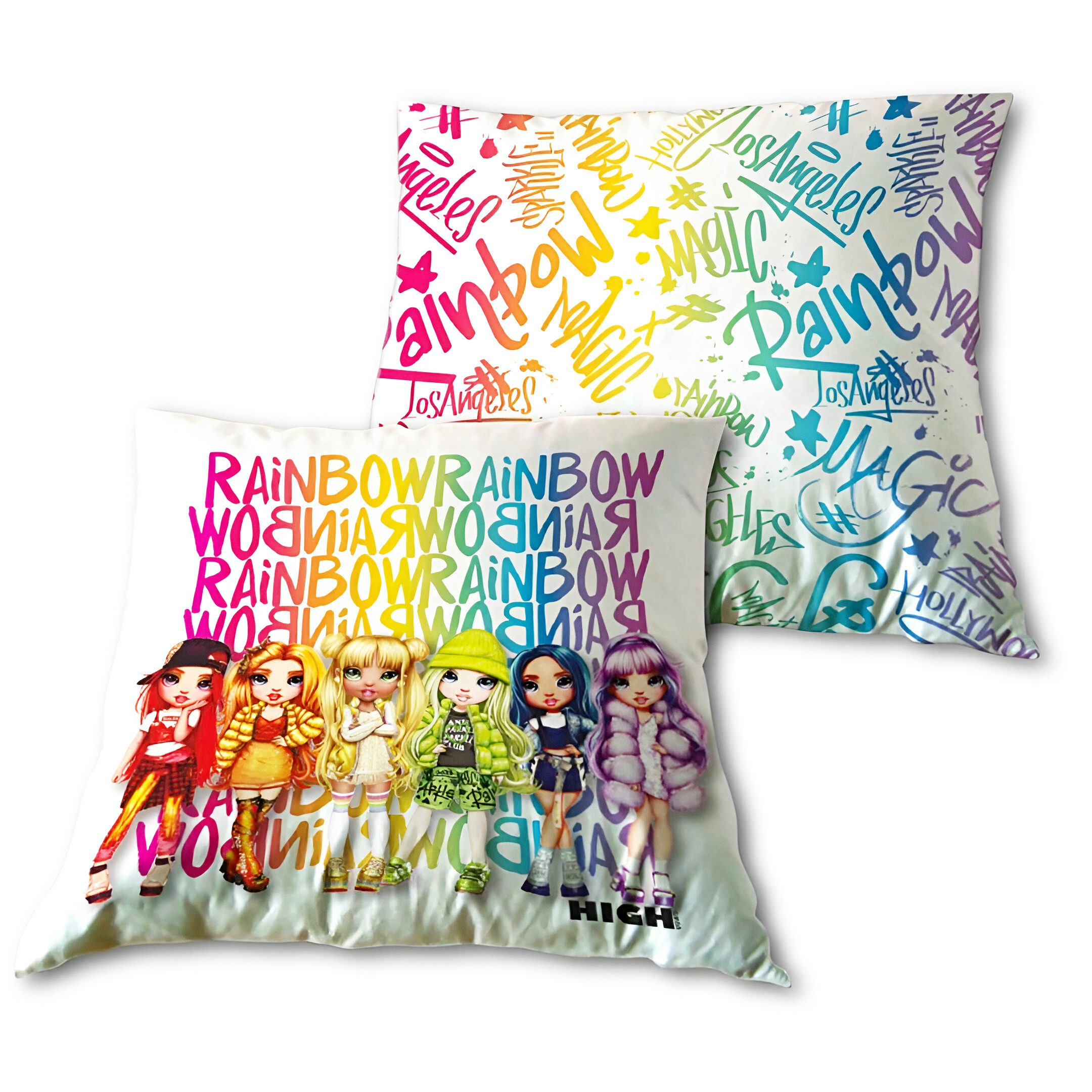 Farbenfrohes Design: Beidseitig bedruckt mit Rainbow High-Charakteren und lebendigem Schriftzug – ein echter Hingucker.