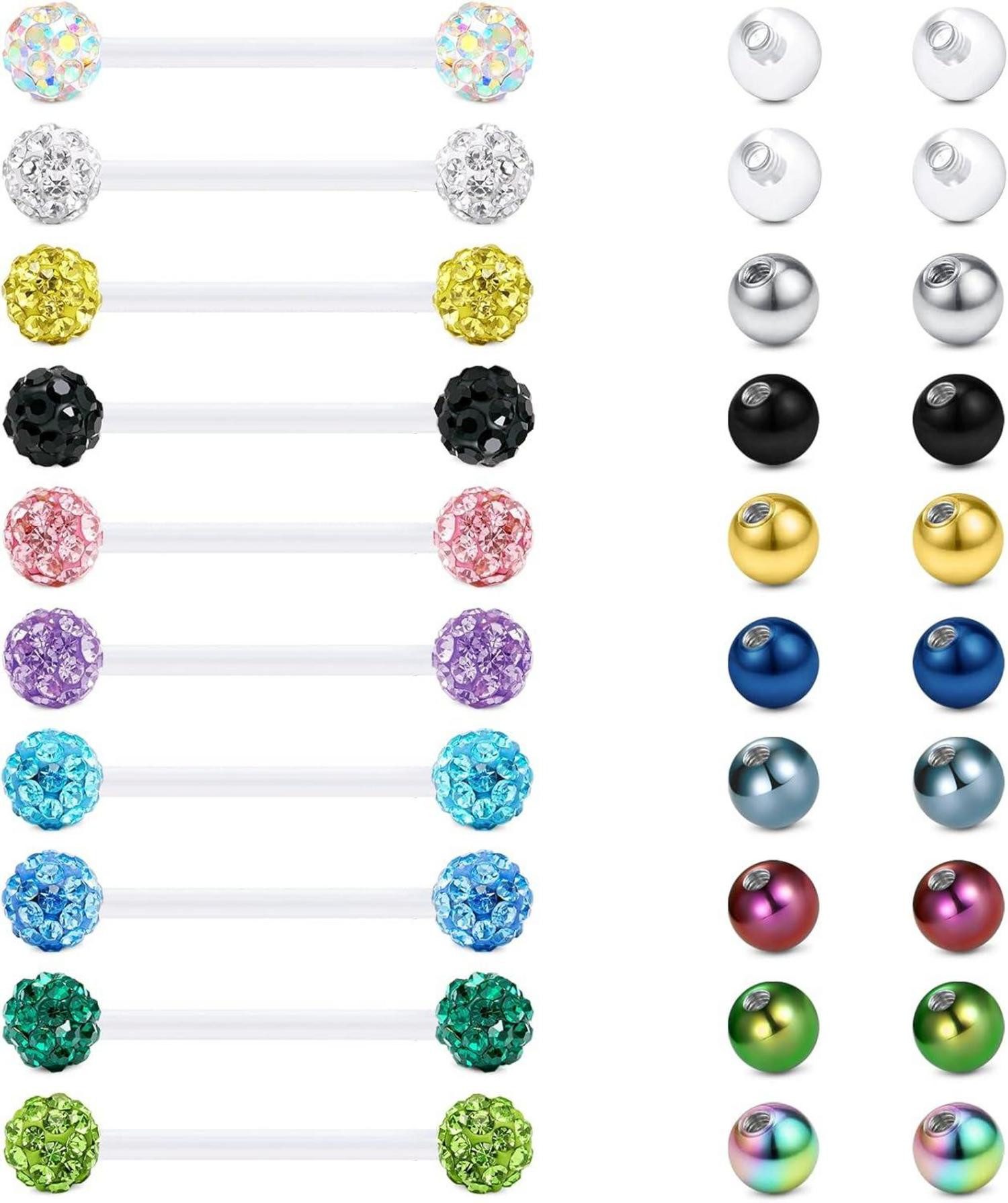 Anpassbare Длина: Es gibt 12mm, 14mm, 16mm, 18mm, 25mm, 32mm, 35mm und 38mm, Sie können eine klare Zungenleiste wählen, die perfekt zu Ihren Vorlieben und Ihrem Stil passt. Ob Sie einen kürzeren Stab für einen dezenten Look oder einen längeren für mehrere Piercings bevorzugen, es gibt eine Option, die Ihren Bedürfnissen entspricht.