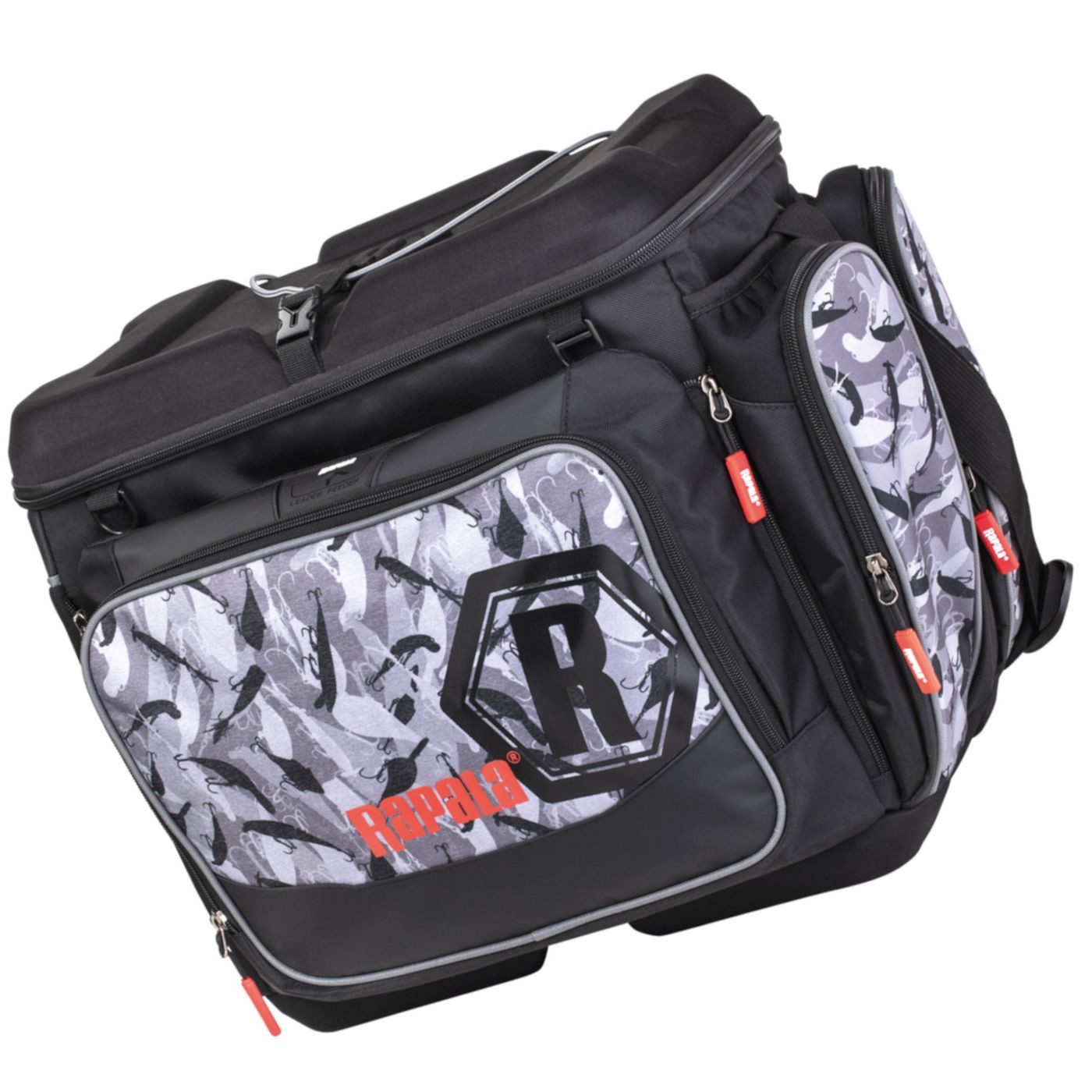 Rapala Lurecamo Tackle Bag Magnum 45x30x39cm - Tackletasche - Die Angeltasche von Rapala eignet sich sehr gut für Spinnfischer die nach einer modernen Transporttasche für Ihre Köder, Angelwerkzeuge und mehr suchen. Die Tackletasche kommt im Lure Camo Design und besteht aus einem wasserdichtem Rapala Gewebe. Zudem hat sie einen strapazierfähigen Boden, der die Tasche vor dem Eindringen von Wasser schützt. Die Tasche bietet viel Stauraum, so dass Tackle Boxen, gefüllt mit Gummifischen, Wobblern und mehr, Platz finden. Zudem hat die Angeltasche einen Schnellzugriff auf der Oberseite. Die mehrschichtige Fronttasche bietet einen sicheren Werkzeugspeicher, der sich weit öffnen lässt und Reißverschlusstaschen für Vorfächer und Organizer. Die Tackletasche ist an den Seitentaschen mit Neopreneinsätzen geschützt und hat einen gepolsterten verstellbaren Schultergurt, der zusammengezogen auch als Tragegurt dienen kann. Eine praktische, durchsichtige Tasche mit Reißverschluss im Taschendeckel kann zum Verstauen von Angelscheinen verwendet werden kann.
