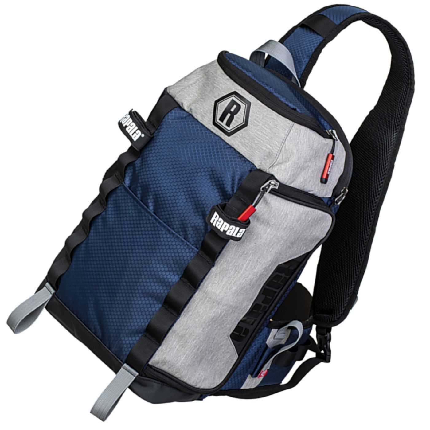 Rapala Countdown Sling Bag 42x25x13cm - Kunstködertasche - Leicht zugängliche Haupttasche mit seitlichem Einstieg oben, wenn sich die Tasche seitlich vorne befindet. Die Innentaschen sind für kleinere Ausrüstungsgegenstände gut geeignet. In dem Hauptfach ist Platz für zwei 3600er Planoboxen. Die gepolsterte Rückentasche bietet Platz für Laptops bis zu 13 Zoll. Eine erweiterbare Seitentasche bietet Stauraum für eine Trinkflasche und obere Tasche für zusätzliche Materialien. Es sind externe Daisy Chain mit abnehmbaren Klettbändern zum Tragen von Ruten oder Kescher vorhanden. Der gepolsterte Schultergurt aus 3D-Netzgewebe ist mit Zangenholster und einer QuickRelease-Schnalle ausgestattet. Die Sling Bag besitz eine Reißverschlusstasche für ein Handy am Schultergurt.