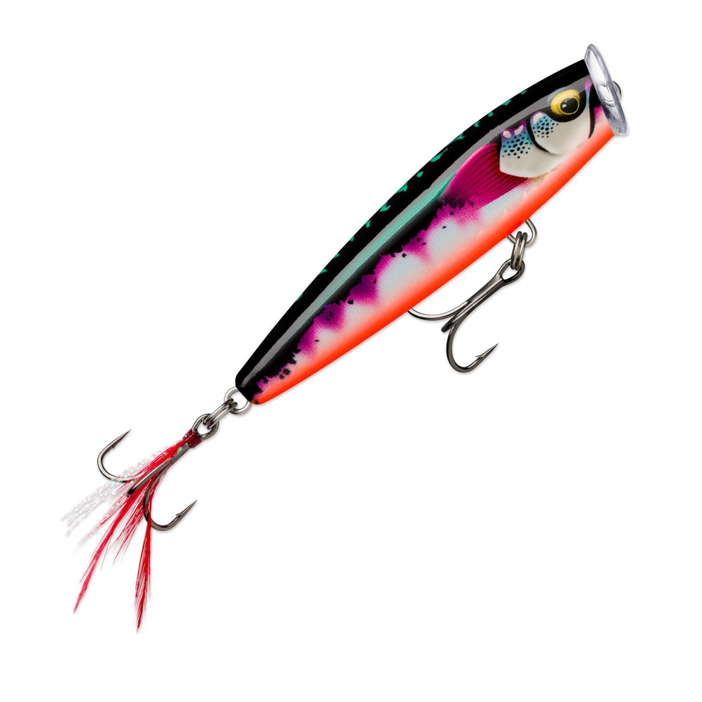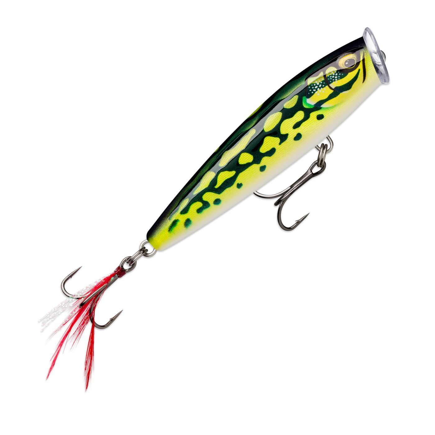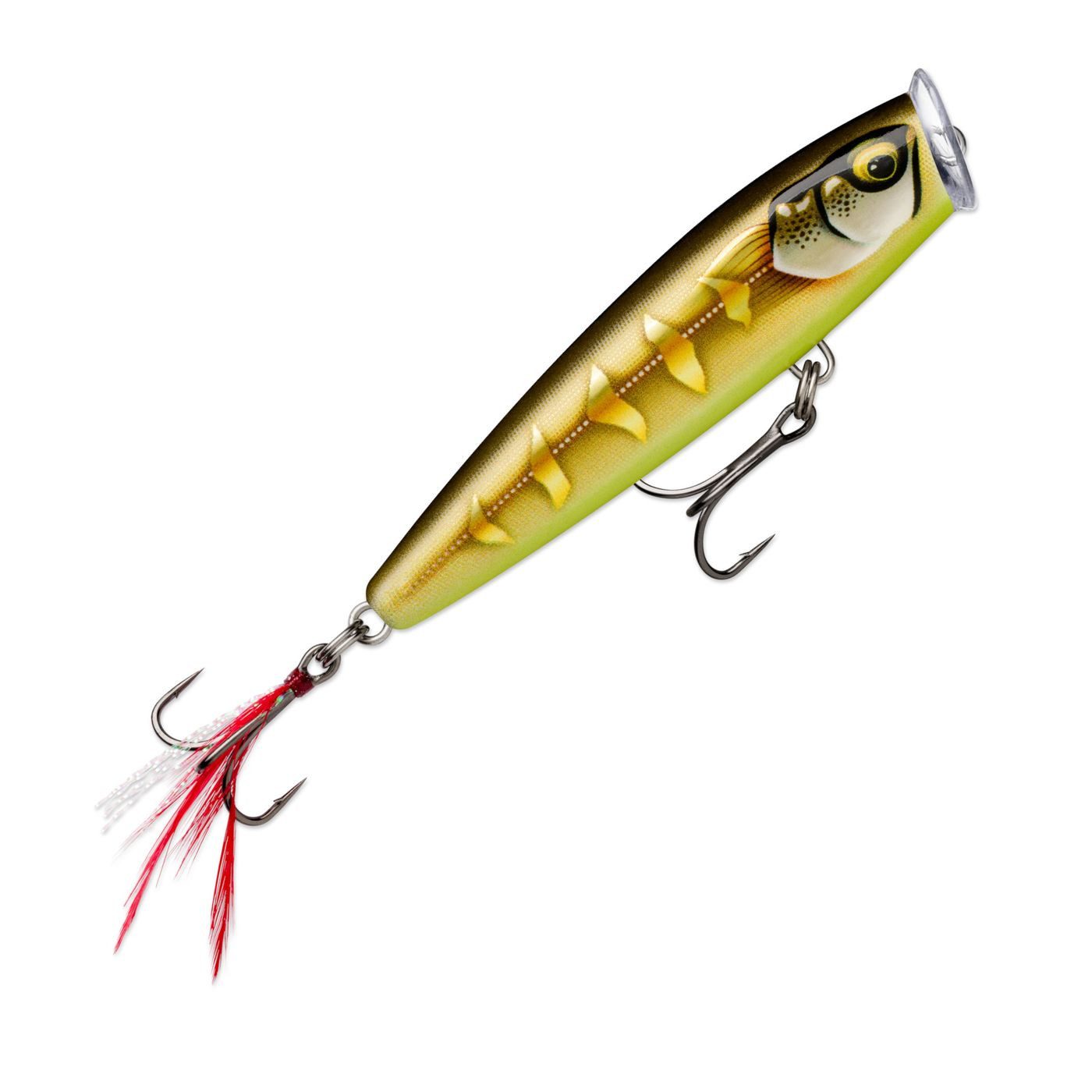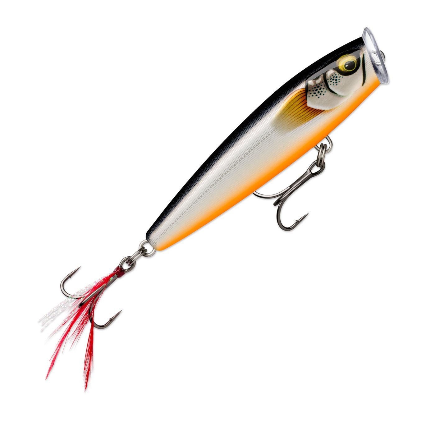 Rapala Skitter Pop Elite - Der am Schwanz beschwerte Skitter Pop Elite lässt sich weit und kontrolliert werfen und hüpft mit lauten und tiefen Pops durch das Oberflächenwasser! Die Balsakonstruktion des Skitter Pop Elite wurde für große Barsche, Rapfen und Hechte entwickelt und ermöglicht eine Vielzahl von Präsentationen. Die verstärkte Konstruktion und die modernen Süß- und Salzwasserdesigns des Skitter Pop Elite locken zuverlässig und sind sehr langlebig.